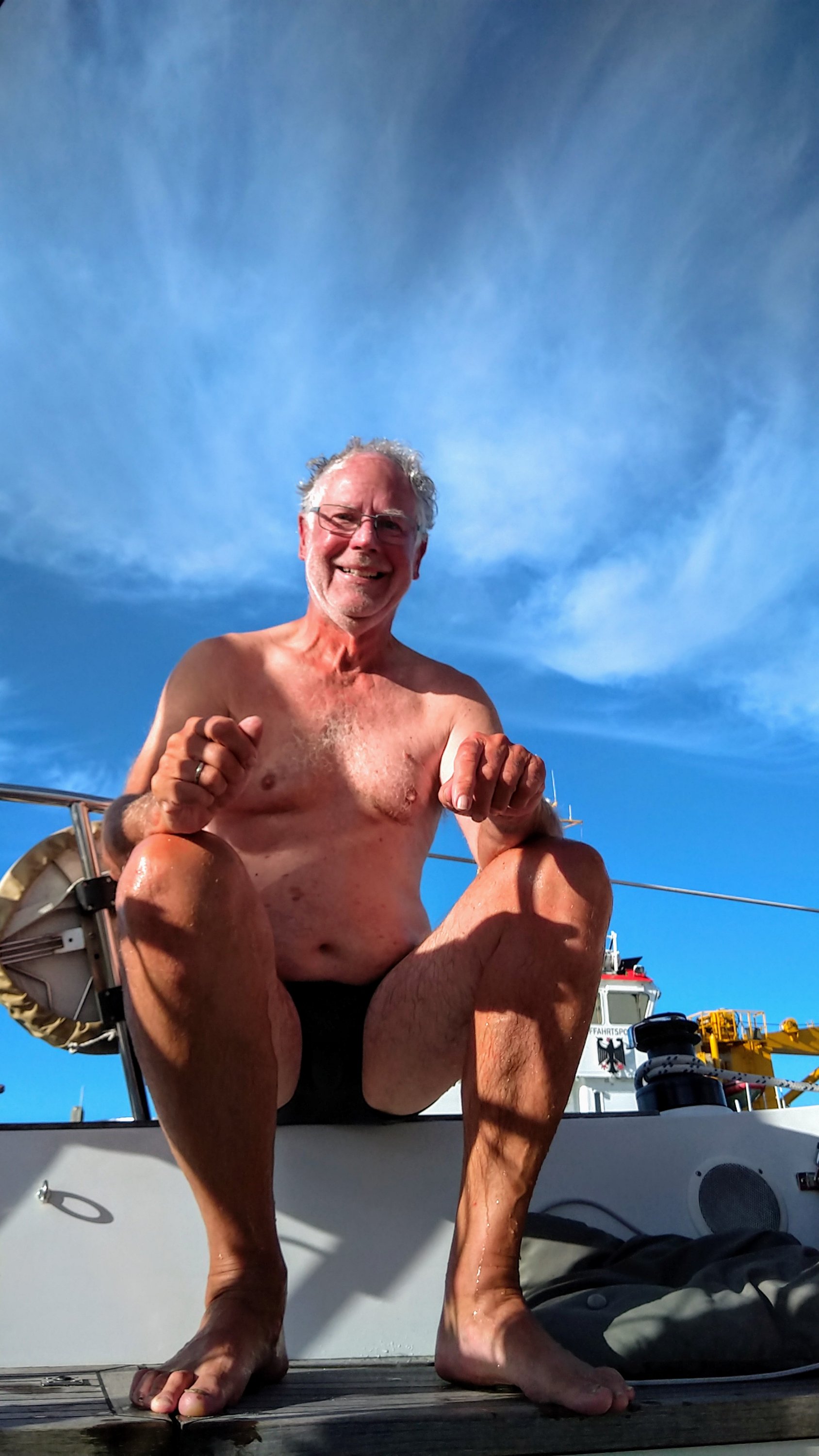 Aber einige Zeit später wage ich bevor das Niedrigwasser eintritt noch ein Bad im Hafen.