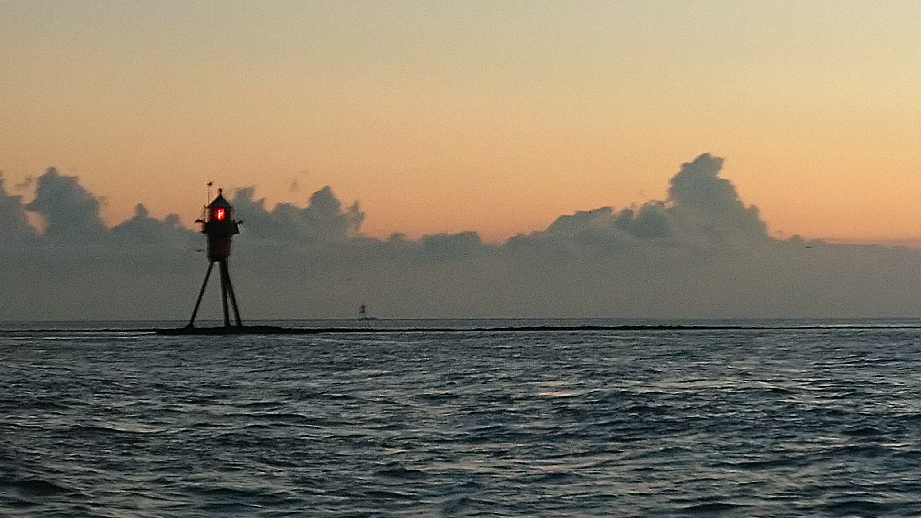 In rascher Fahrt ging’s mit der Tide mit über 8 Kn die Außenweser hinaus. ich wusste ich durfte keine Zeit verlieren, wollte ich nicht vor Amrum zu früh in die Gegenströmung gelangen. Obschon zig mal hier gefahren erfreute mich zu dieser frühen Stunde die Außenweser besonders.