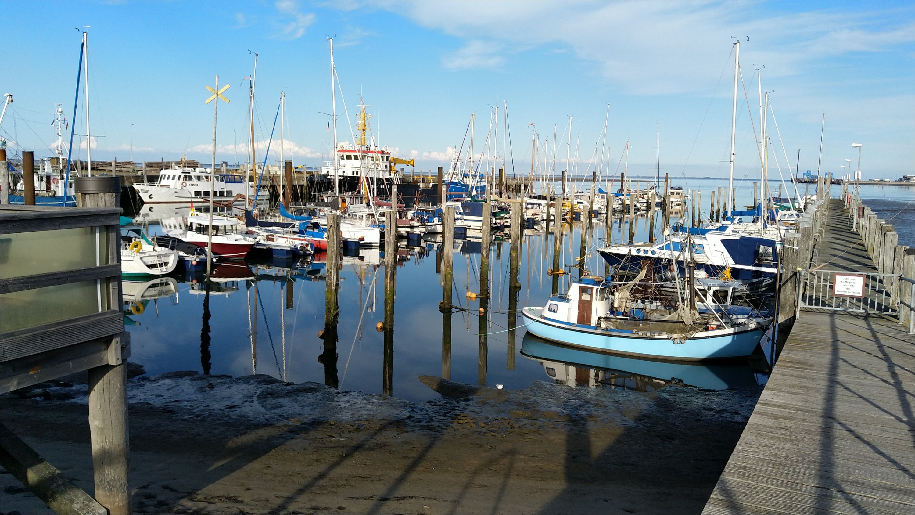 Ich finde im Hafen von Wittdün einen guten Platz am langen Schwimmsteg.
