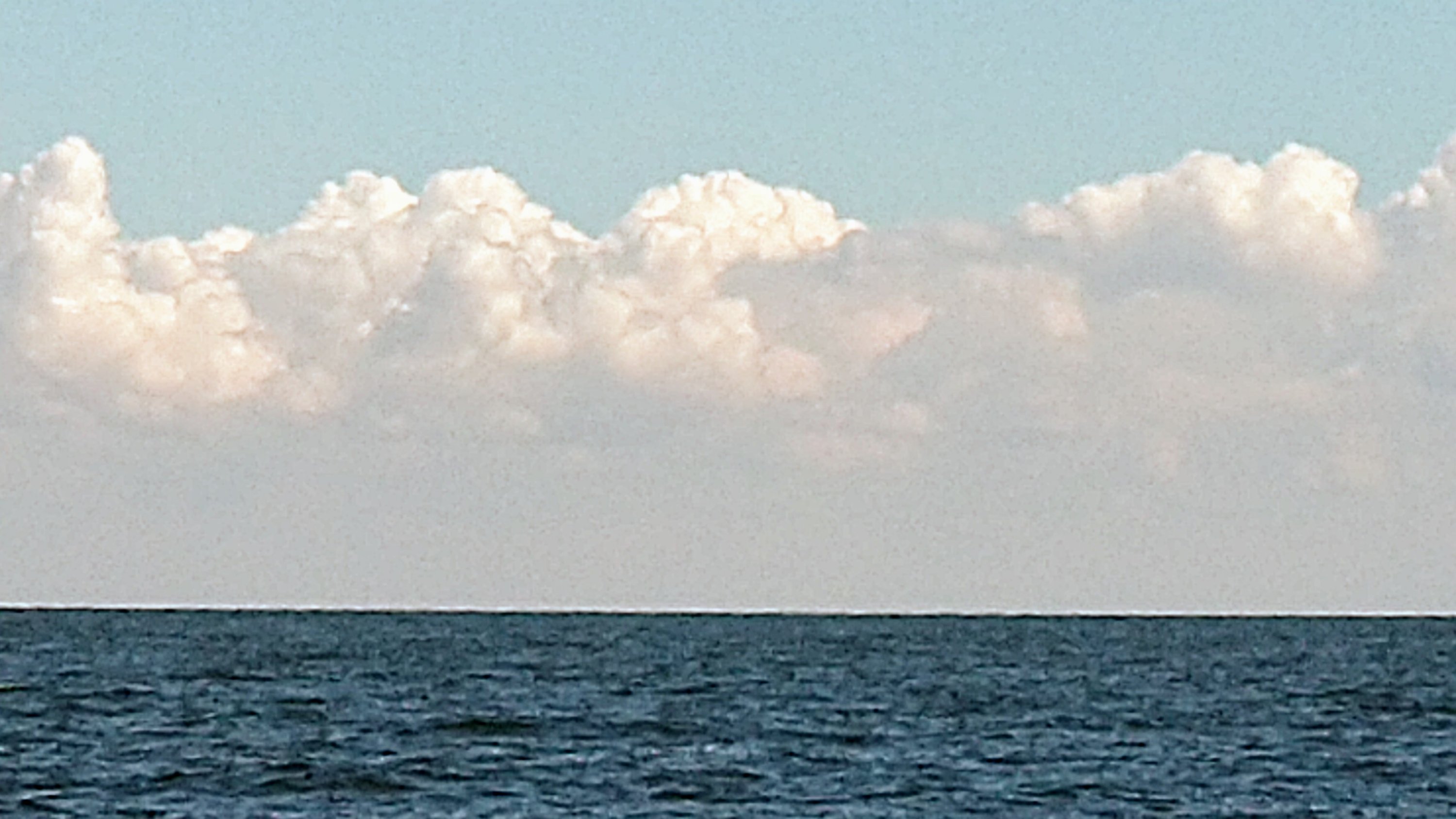 Auf dem Wasser jetzt strahlend blauer Himmel. Mit Schönwetterwolken über See und über Land.