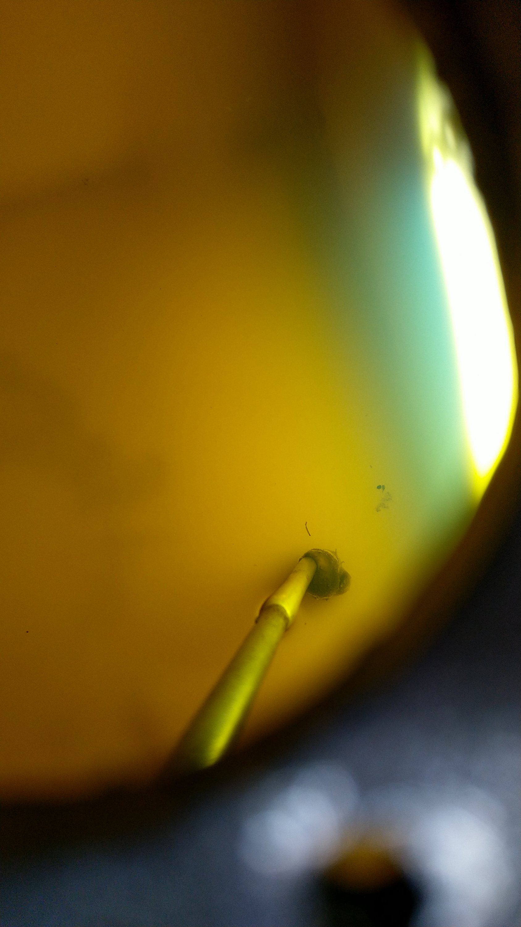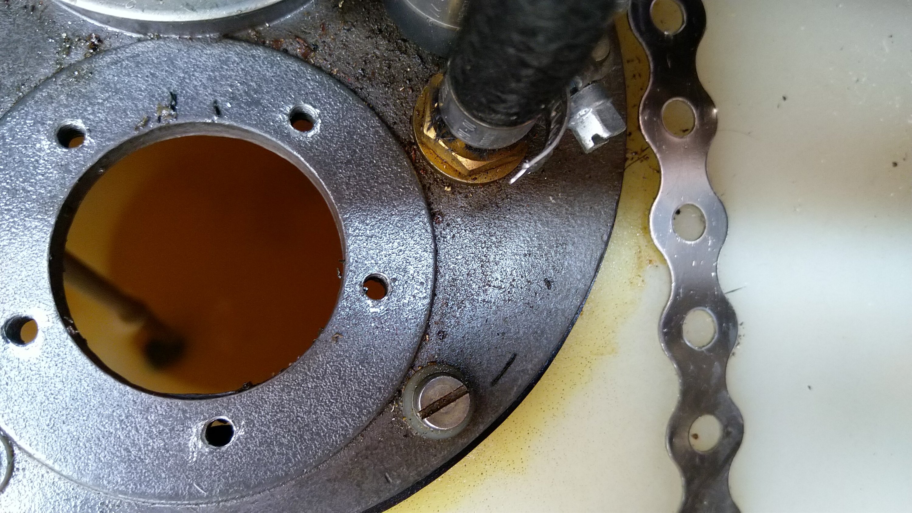 Detlef vom Wassersportclub Helgoland (WSC) half mir mit einem dicken Aluminiumdraht aus der Patsche. Damit konnte ich durch das Steigrohr den Pfropf rausdrücken und anschließend mit einer Drahtschlaufe aus dünnem Edelstahl das Teil einfangen und aus dem Tank befördern.