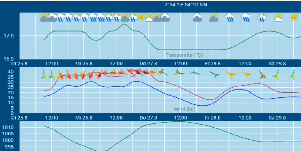 Jetzt hat es mæchtig aufgebriest und der Sturm soll noch bis morgen Nacht anhalten.