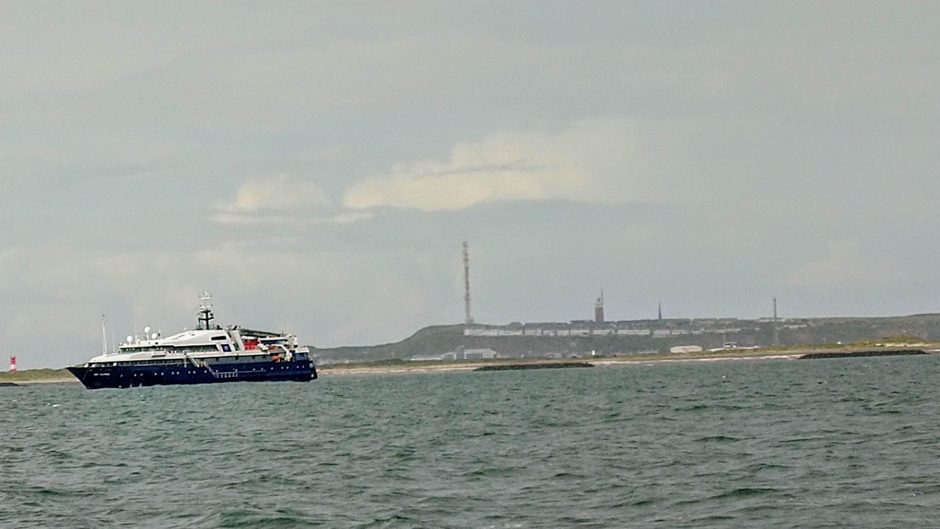 Vor der Düne lag wie gewohnt der Bergungsschlepper auf Position und dann noch die „Quest“ ein kleines Kreuzfahrtschiff der Adler-Rederei, welches ich schon vor Amrum gesehen hatte. Mehr zu diesem Schiff an anderer Stelle.