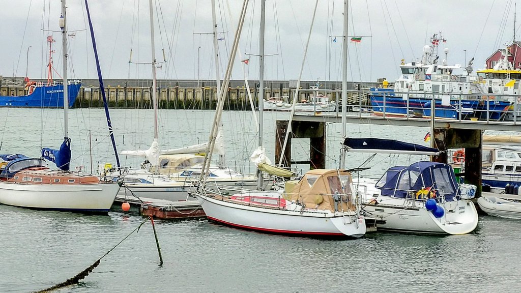 Der Helgoländer Hafen ist nicht so voll wie sonst. Als ich Montag von Amrum kam waren sogar nicht alle Stegplätze besetzt und seitdem sind nur wenige Boote eingetroffen. Alle haben den ersten Herbststurm „Kirstin“ kommen sehen.