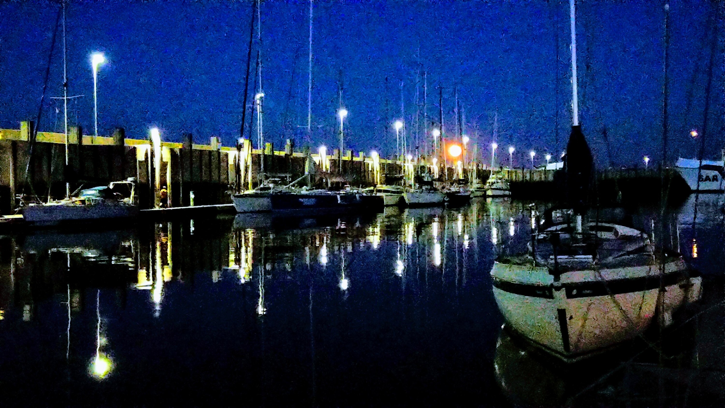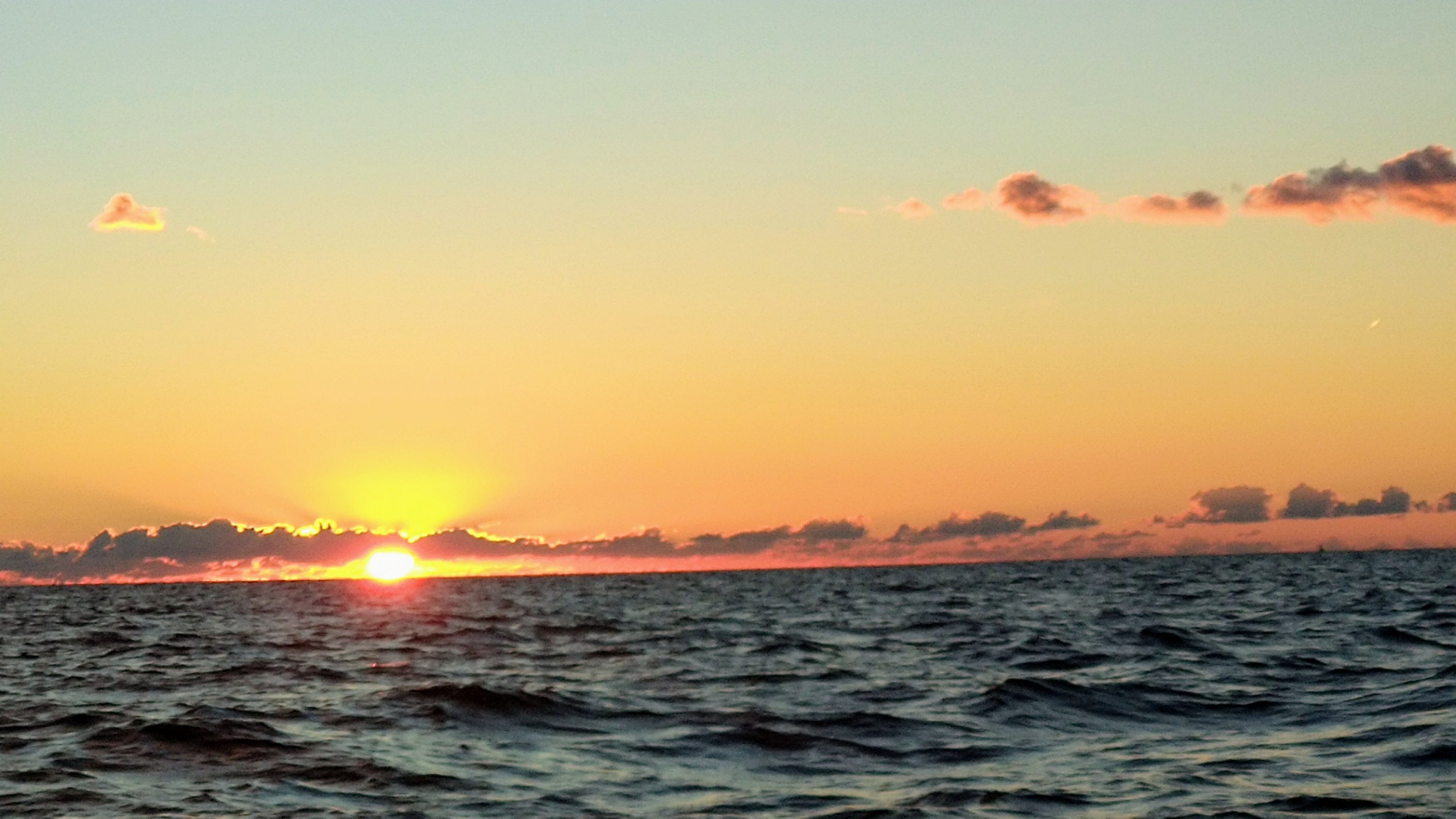 Ein fantastischer Sonnenuntergang belohnt uns bei der Ansteuerung des Südhafens.
