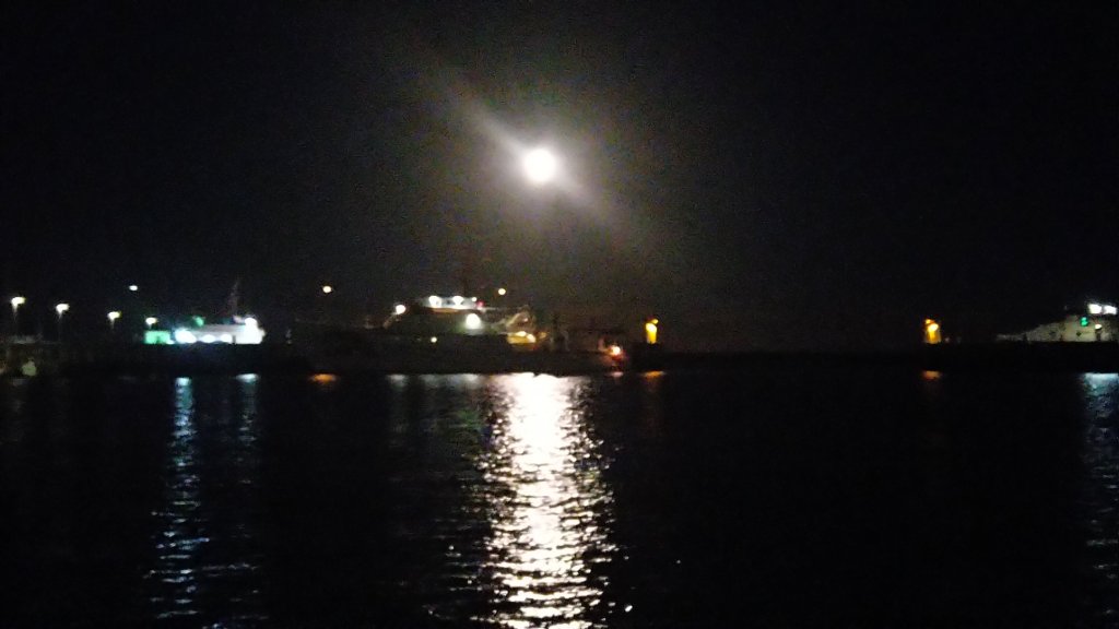 Über dem Seenotrettungskreuzer der DGzRS Hermann Marwede steht einige Zeit später der Vollmond.