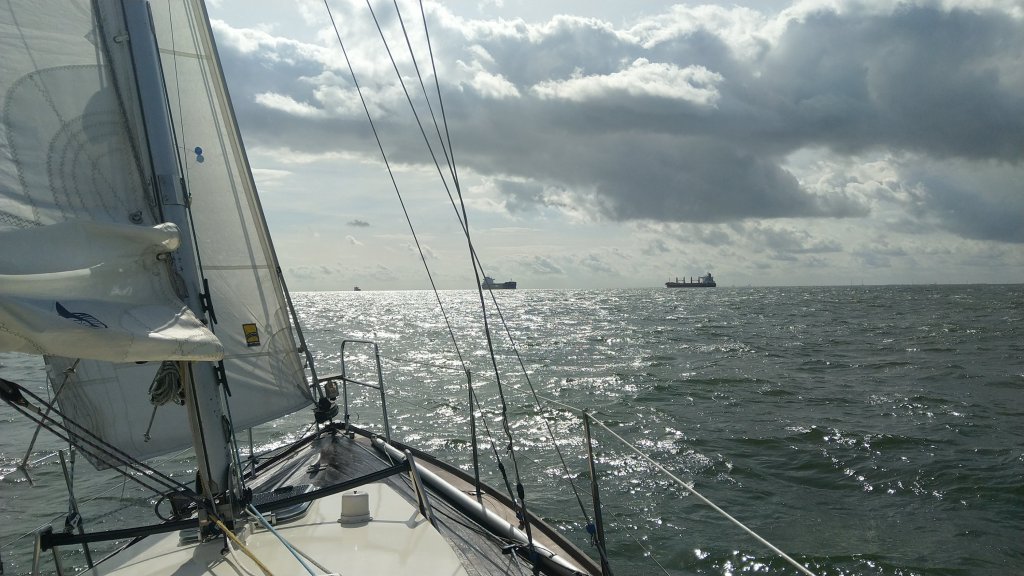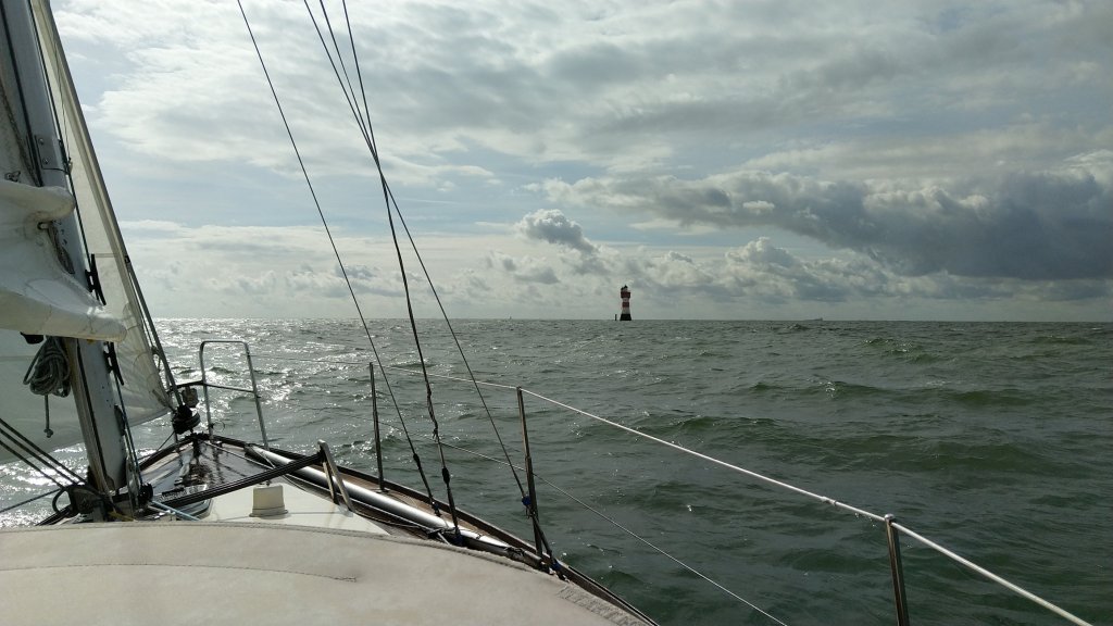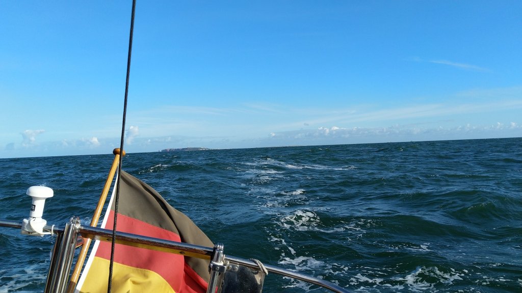 Wir starten sicherheitshalber mit 2 Reff im Groß und Fock. Es geht sehr flott voran und Helgoland verschwindet bald hinterm Horizont.