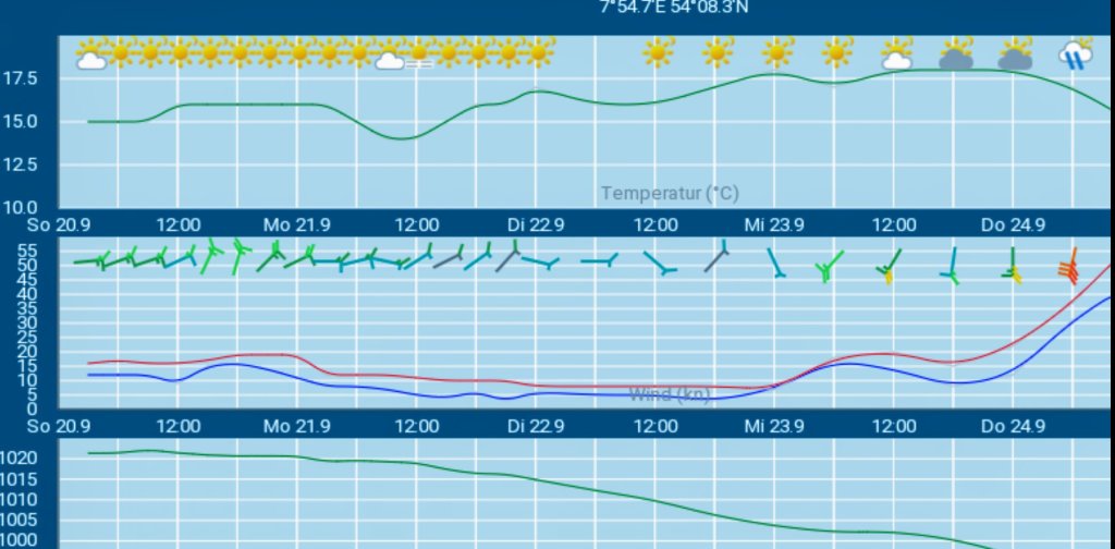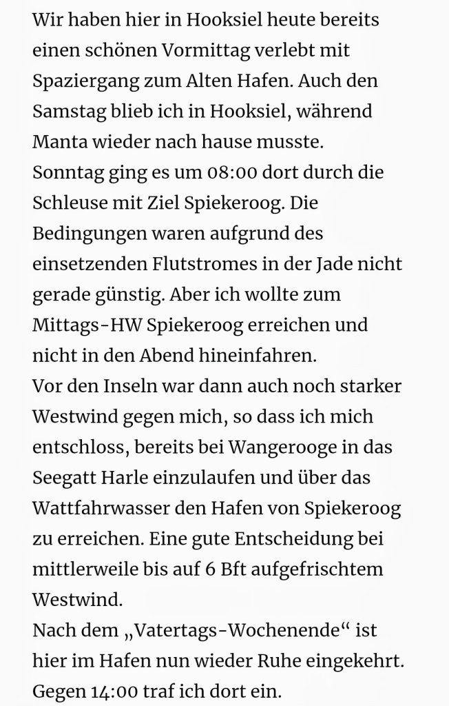 Dienstag Erkundung Spiekeroog und Mittwoch dann Törn nach Helgoland. Wir wollen schließlich den sicheren Hafen dort vor Eintreffen des Tiefs erreichen😉
