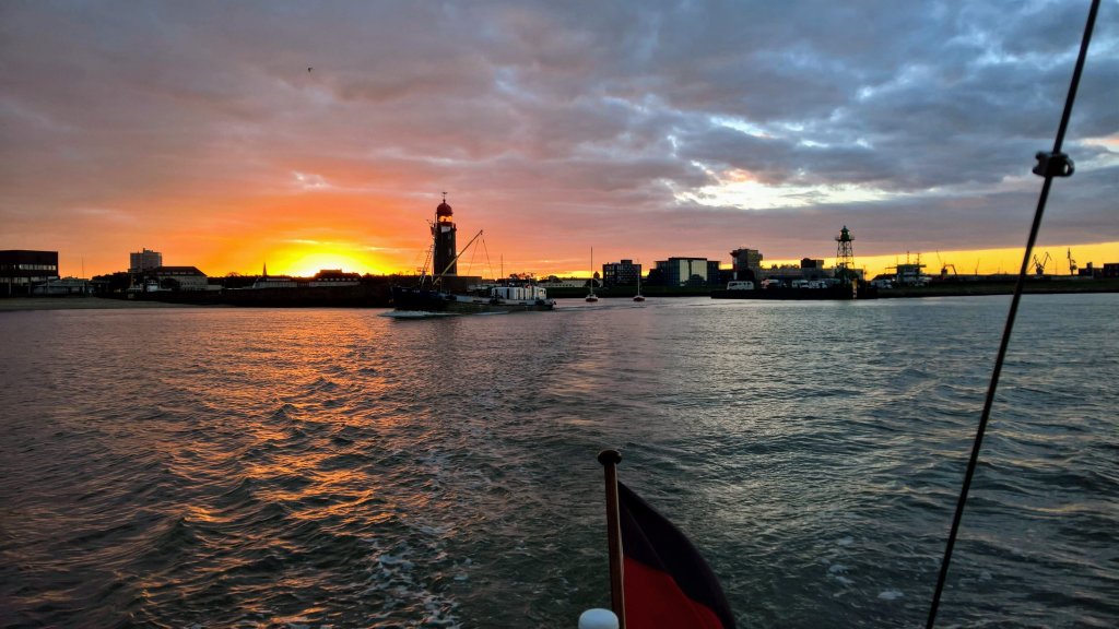 Bin gespannt, wie diesmal unser Törn verläuft und freue mich schon auf den Sonnenaufgang hinter der Skyline von Bremerhaven.