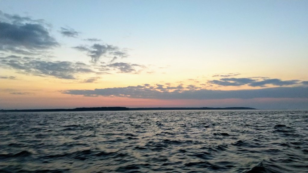 RichtungTG9 (Verkehrstrennungsgebiet) mussten wir ein kleinen Haken schlagen. Auf dem Weg dorthin Sonnenaufgang.