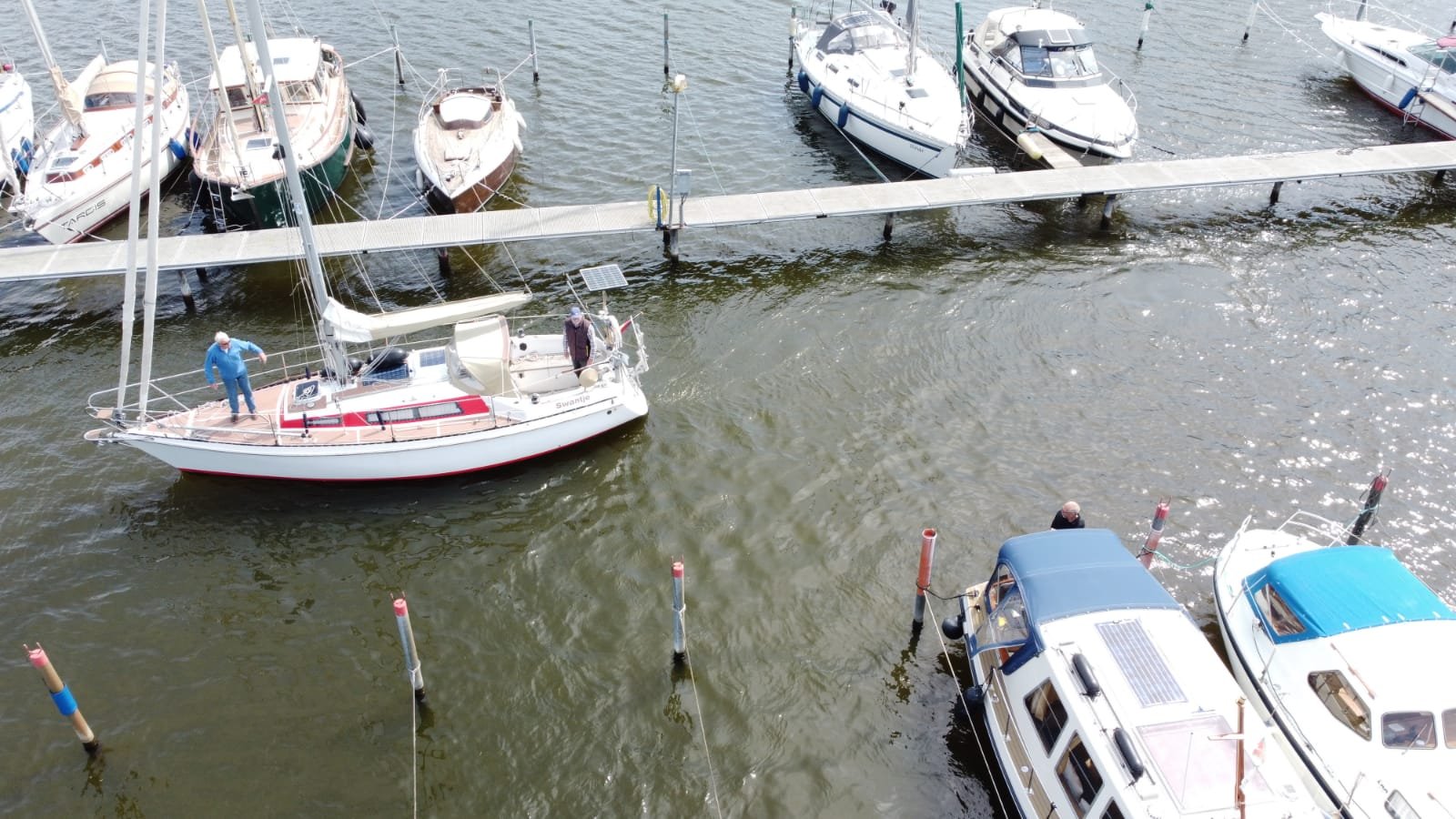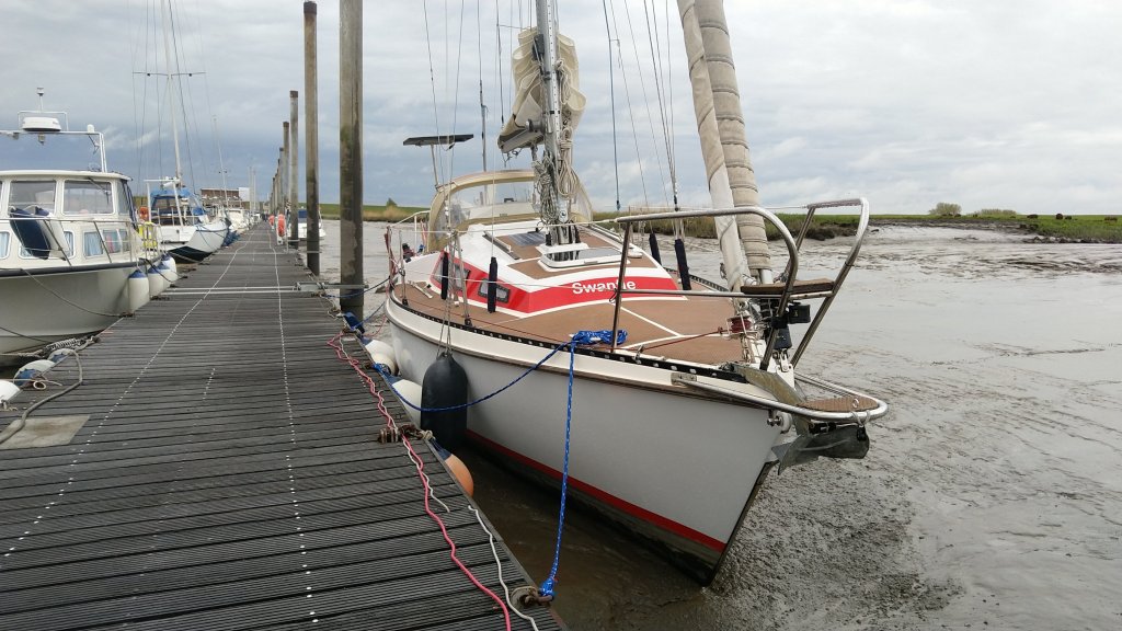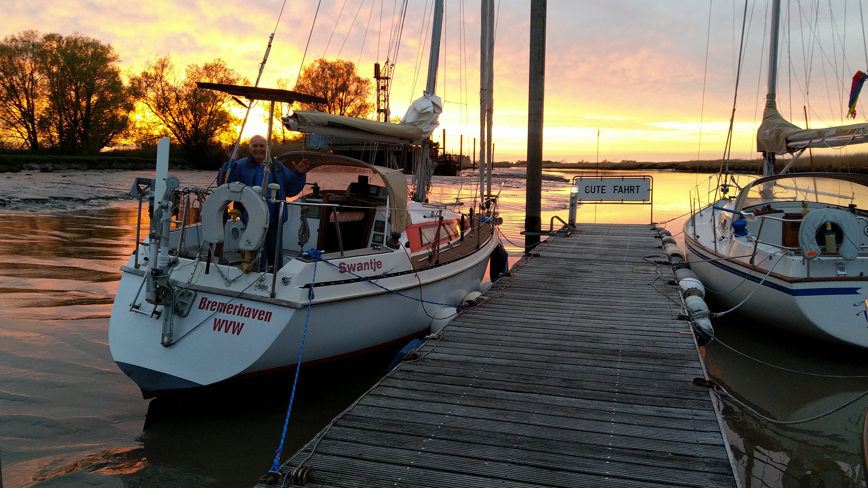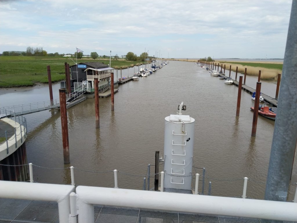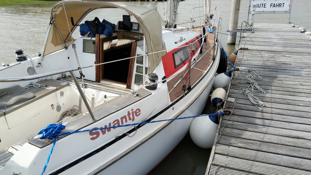 Swantje hat jetzt dort ganz am Ende eines 300 m langen Schwimmsteges beim WSDE vor dem Sperrwerk einen Saisonliegeplatz.
