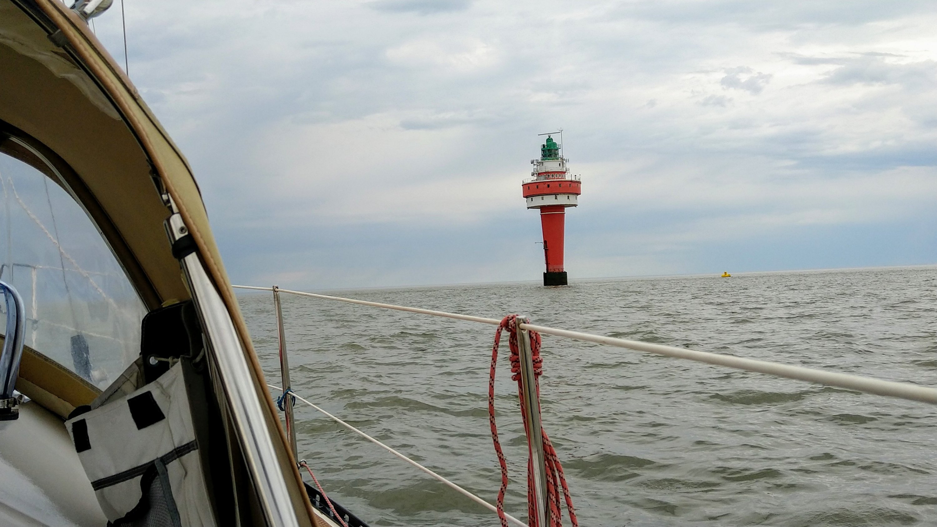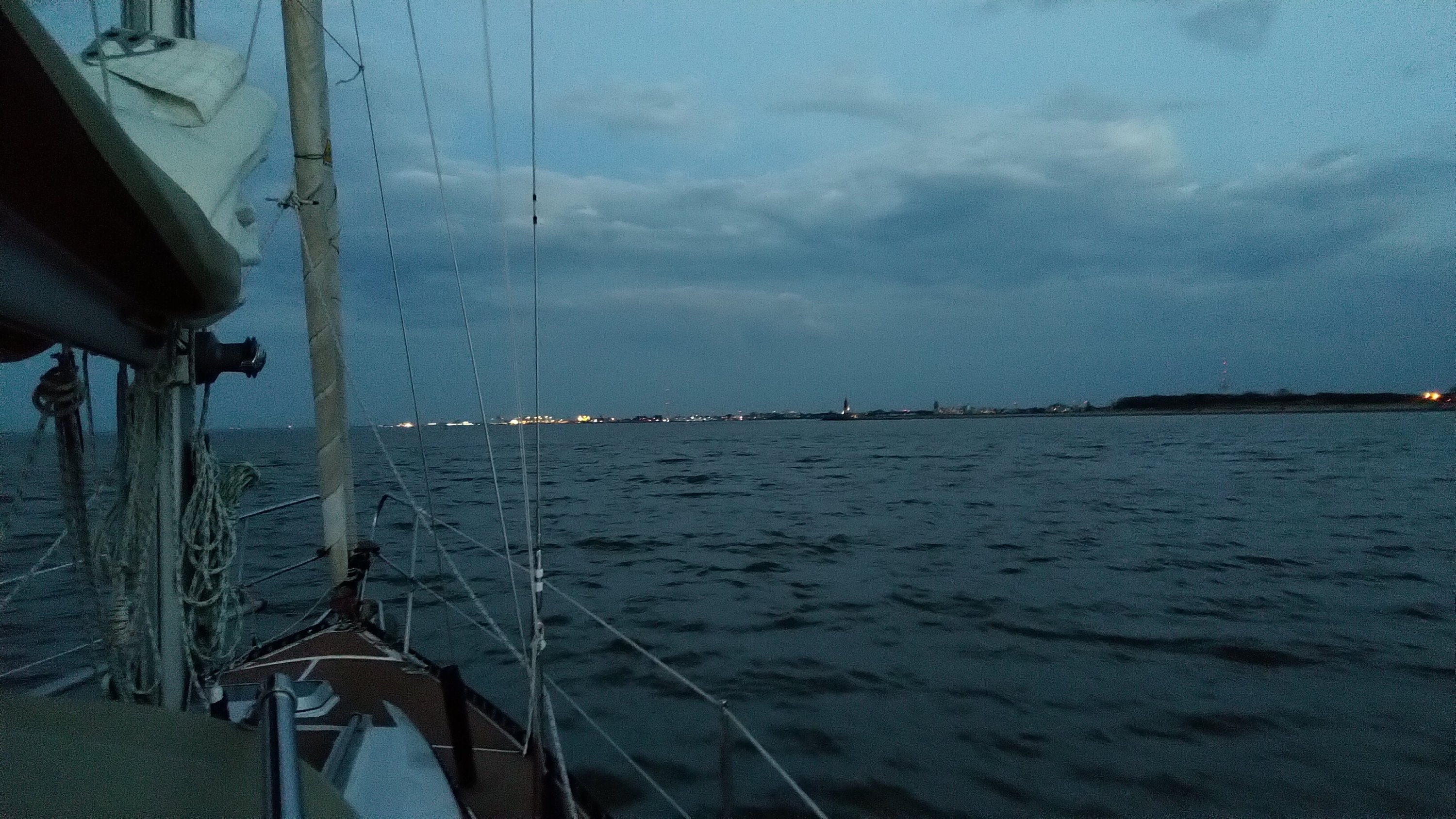 Zeitweise konnten wir nur unter Fock bei sehr böigem Wind unterstützt durch die Strömung bis zu 9kn laufen. Das machte Laune, zumal ab und an die Sonne durchkam.