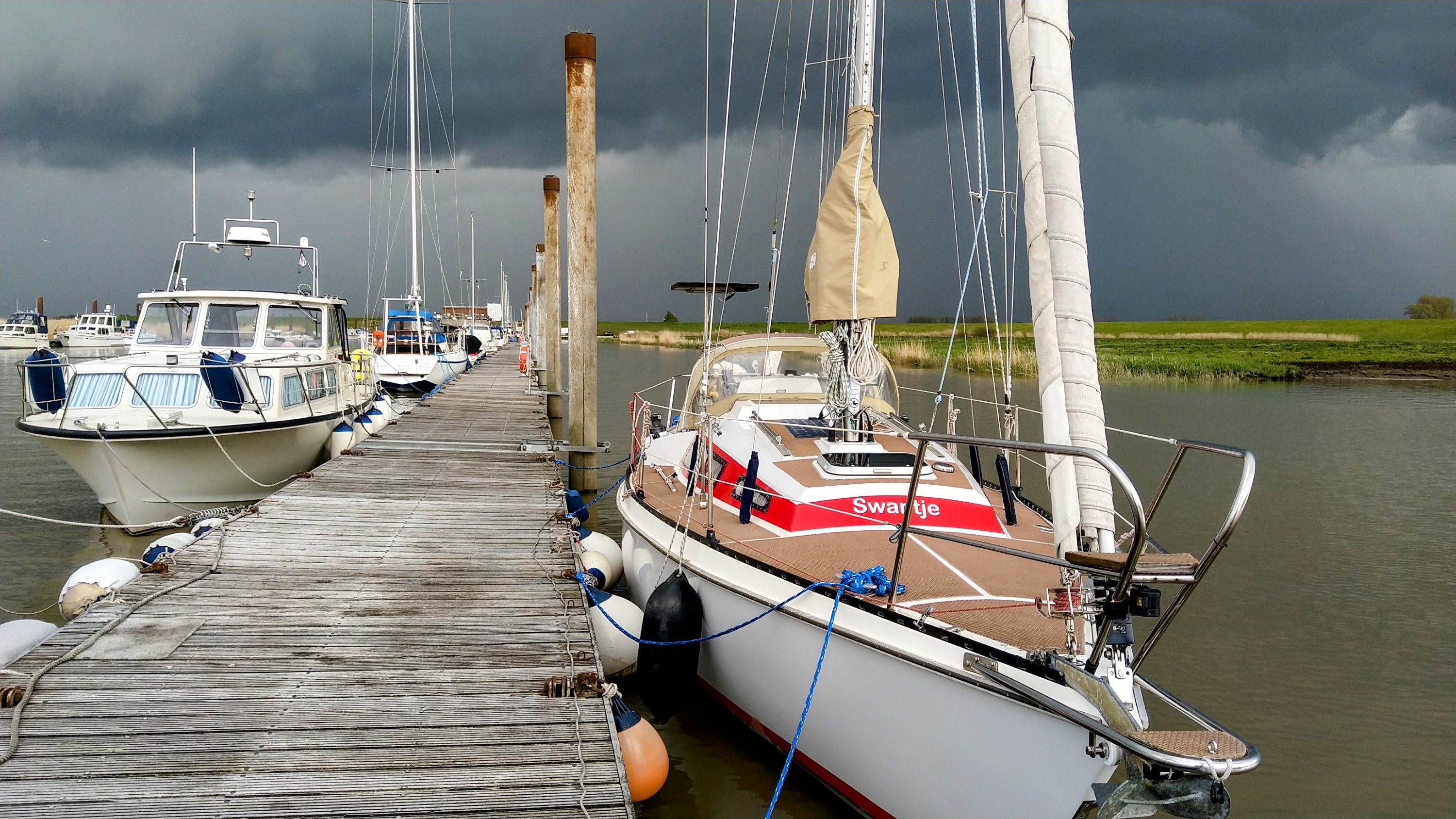Von dem Gewitter hat Swantje heute gegen 17:00 auch noch etwas abbekommen. Kostenlose Bootswäsche 😉
