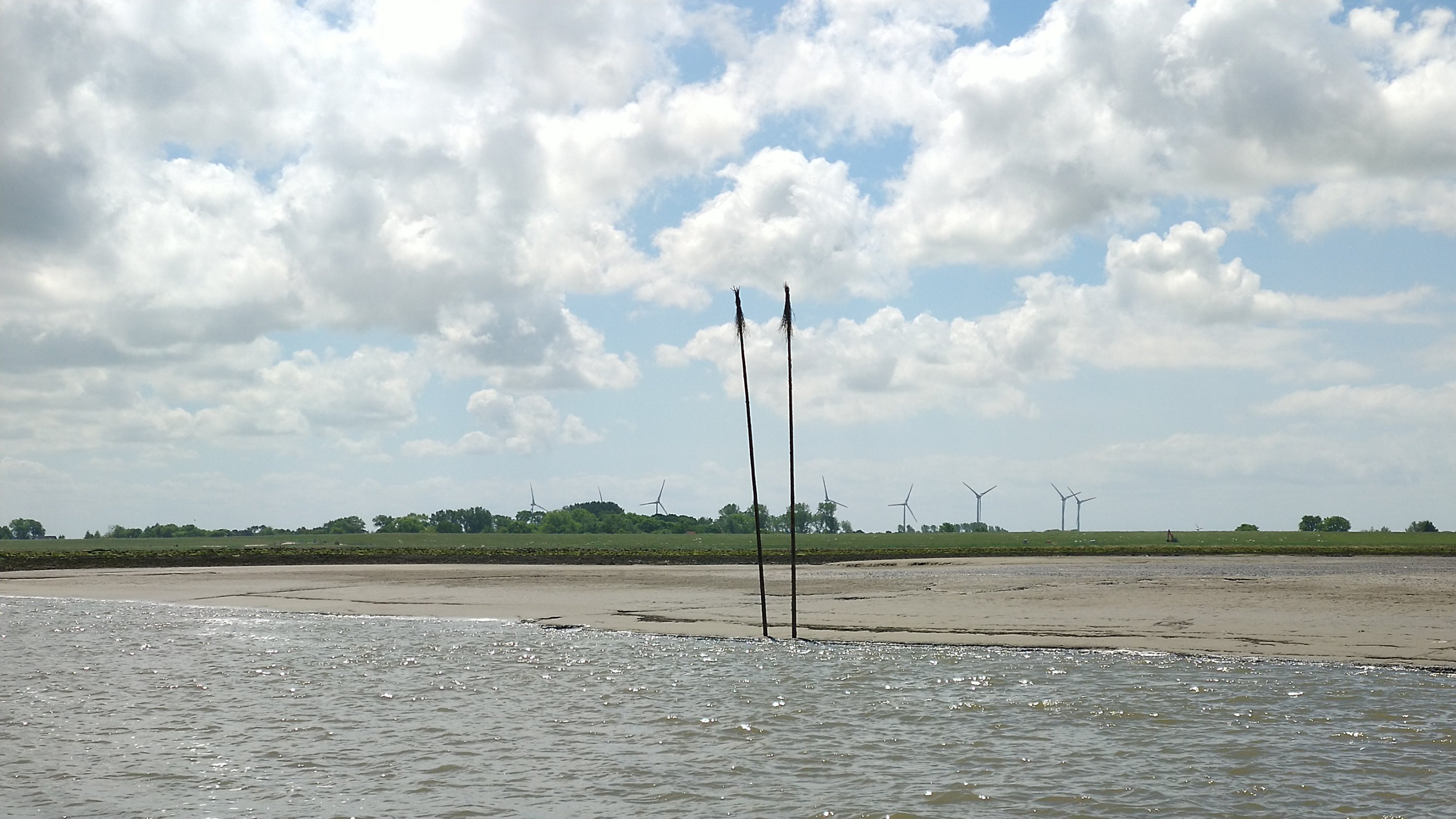 Kurz hinter der „Pommesbude“ geht’s in das Fedderwarder Fahrwasser. Dem folgen wir bei nunmehr mit sehr langsamer Fahrt und genießen die Wattenlandschaft.