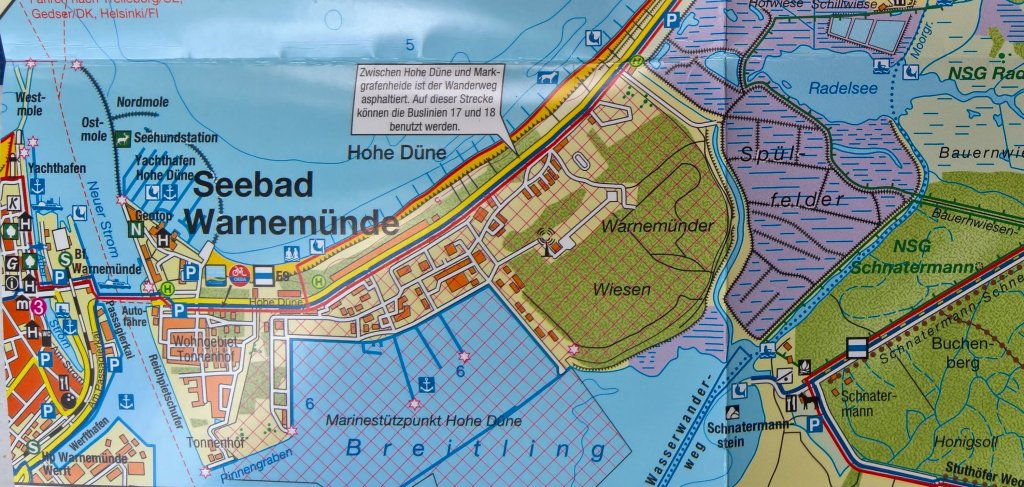 Die liegt normalerweise am Ende des Breitling der Warnow gegenüber von Warnemünde. Dort gibt es den Schnatermann.