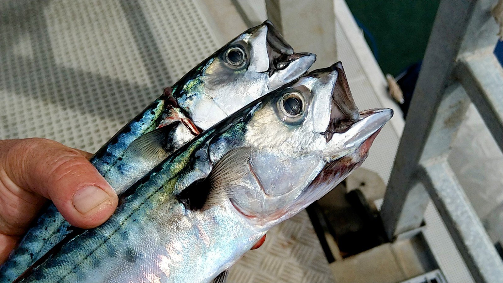 Kurz darauf komme ich mit einem Bootseigner ins Gespräch – bei ihm hat „Petri Heil“ tatsächlich gewirkt. Er zeigt mir die direkt am Liegeplatz frisch gefangenen Makrelen.