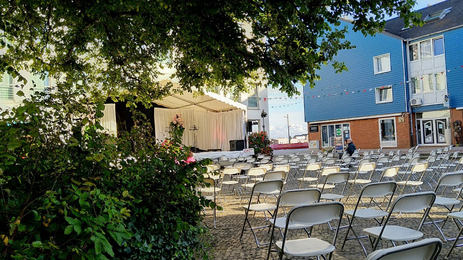 Ich kam rechtzeitig und sicherte mir so einen Platz im komfortablen Strandkorb, der etwas am Rande stand, mit dennoch akzeptabler Sicht auf die Bühne.
