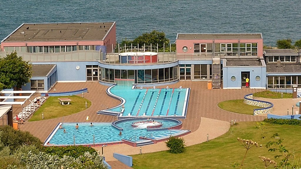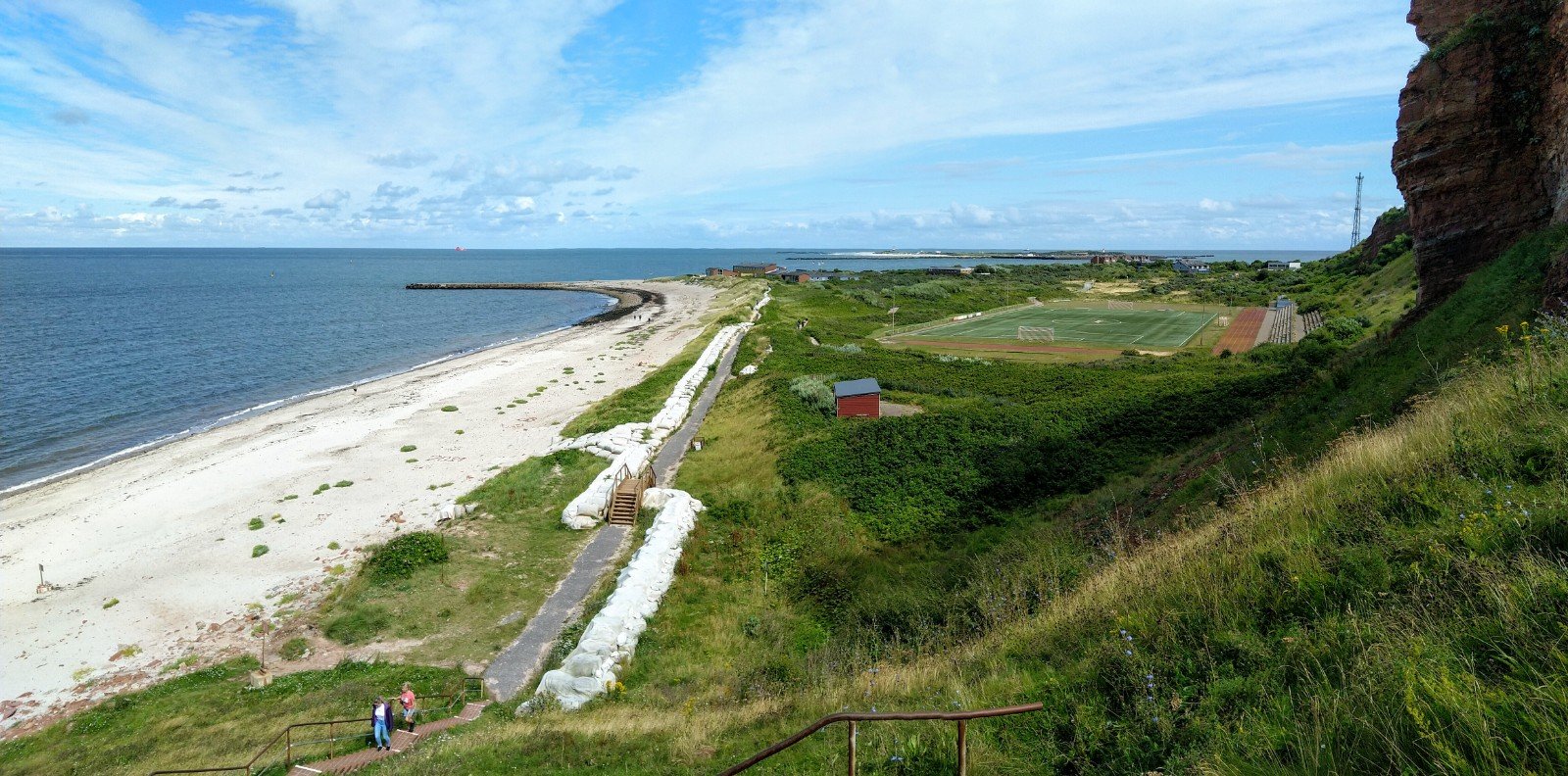 Von hier oben bietet sich ein Klasse Blick auf mein geliebtes Freibad und die Düne mit dem feinsandigen Südstrand.