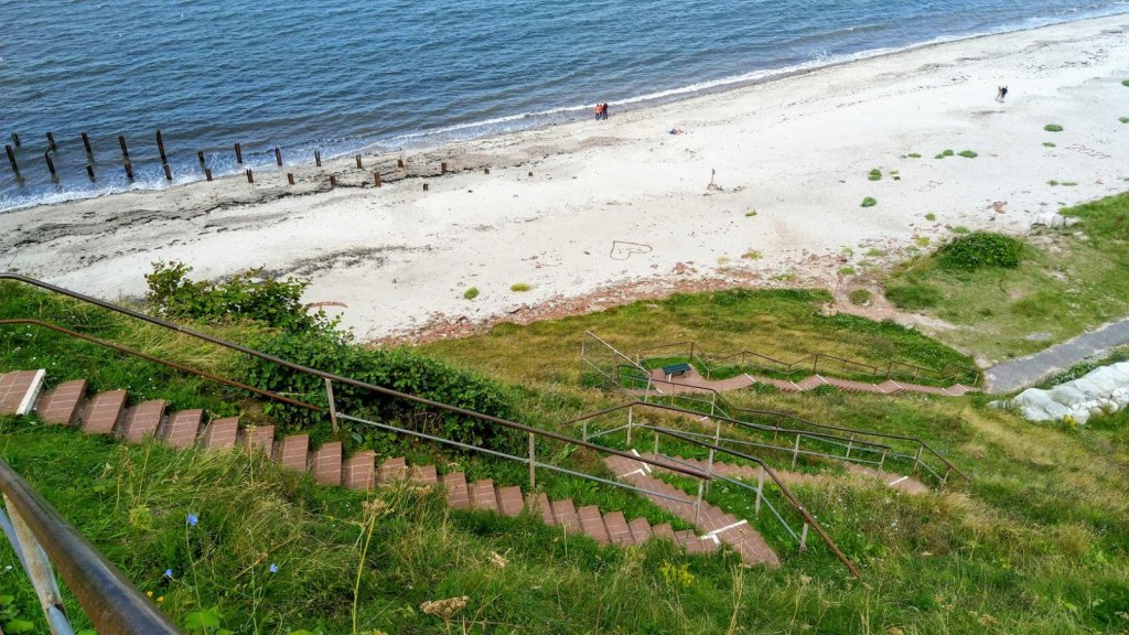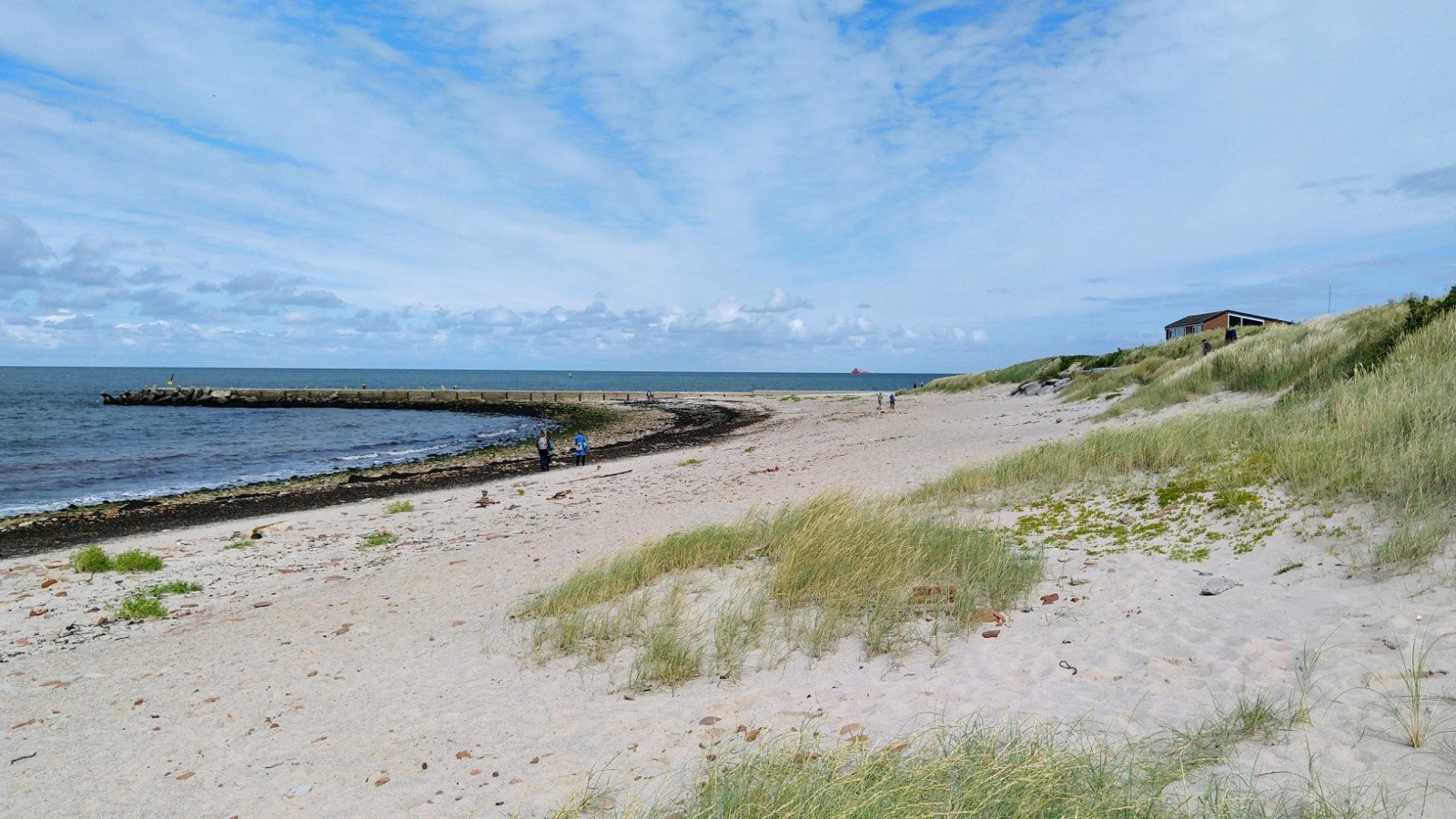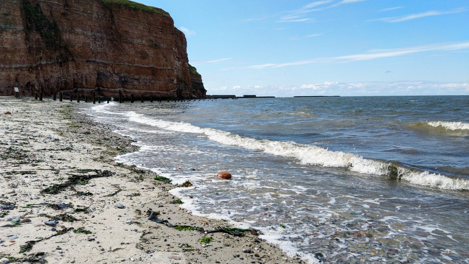 Von der Mole wandert der Blick zum Nordstrand, dessen Steinschätze bei Ebbe jetzt freigelegt sind.
