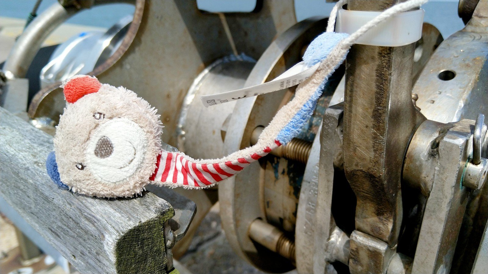 Als ich auf der breiten langen Pier weiter ging, schaute mir auf einer Maschinerie ein kleiner Kobold entgegen.