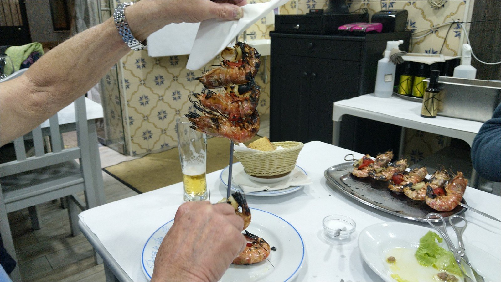 Mit Hannes und Gert besuchten wir dann ein erstklassiges Fischlokal. Gambas vom Holzkohlegrill – lecker !!!