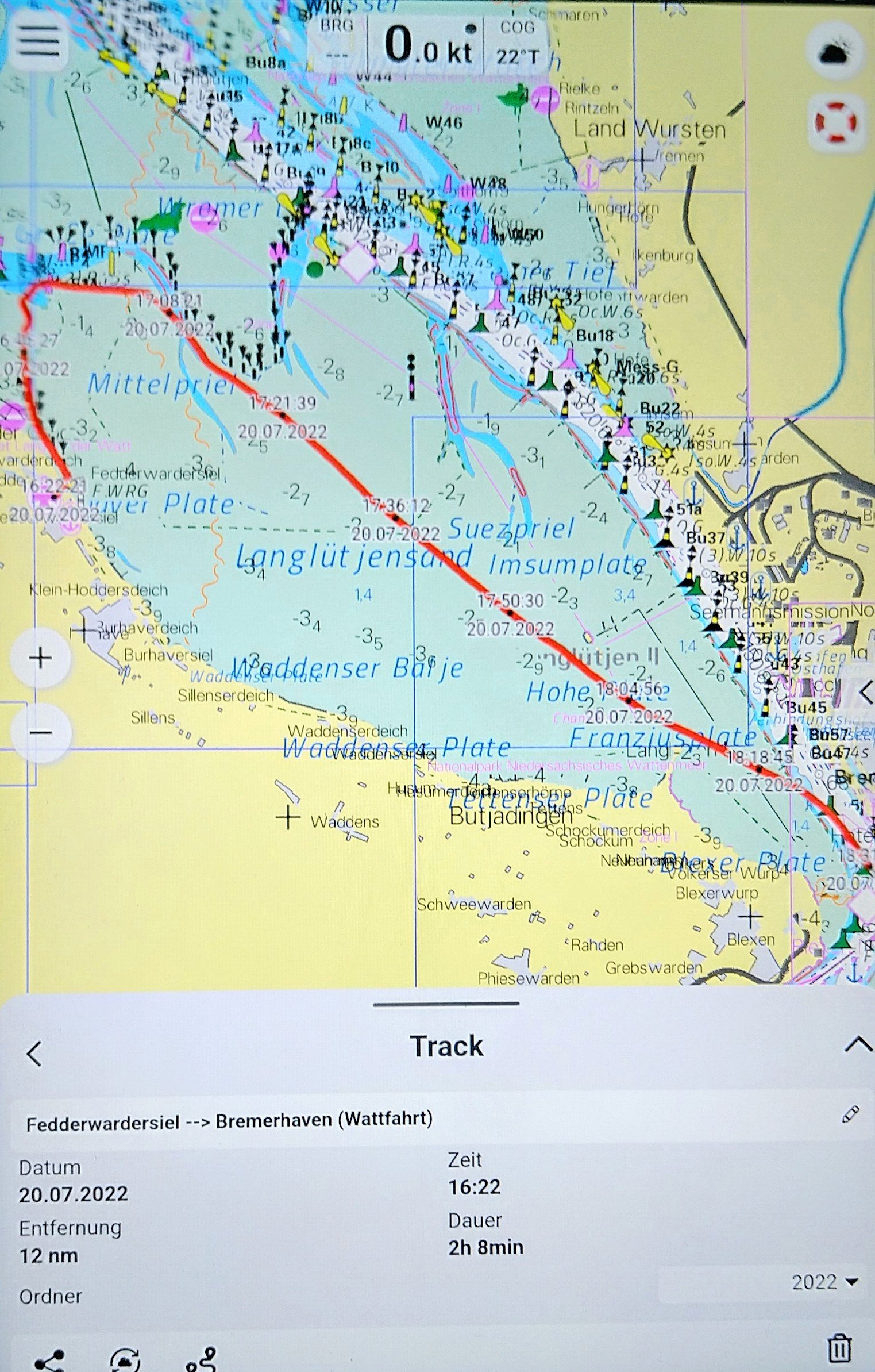 Auch das obere Ende vom Willi Weg schnibbeln wir, Kurs direkt auf die Buhne am Groden um bereits wenig später in den Kutterhafen Fedderwardersiel einzulaufen.