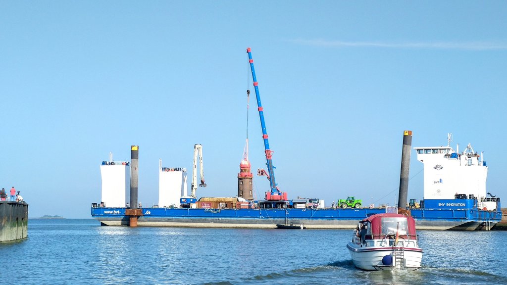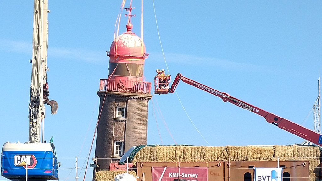 An der Geestemole werkelte man noch am schiefen Turm und auch die vielen erlebnishungrigen Zuschauer standen auf der gegenüberliegenden Mole.