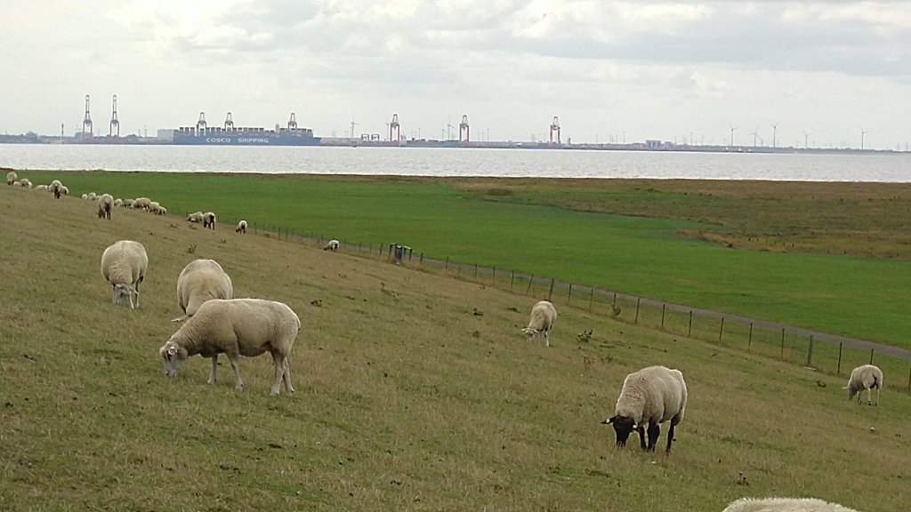 Am Sonntag 11. Sept bin ich von unserem Sommersitz Krautsand aus eigentlich zu einer bekannten Tour nach Freiburg/Elbe gestartet. Sonntags kann man die Brücke des Sperrwerkes Wischhafen nutzen und fährt per Rad flott an der langen auf die Fähre wartenden Kfz-Schlange vorbei 😁
