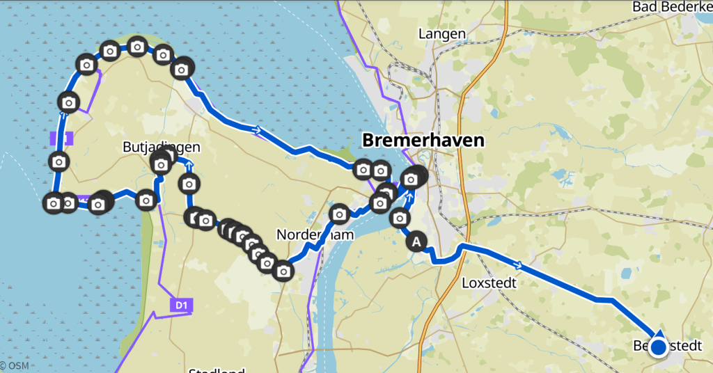Wenns kürzer als 80 km sein soll, vielleicht mal Bahndammweg bis Stollham und von dort rüber direkt nach Fedderwarden.