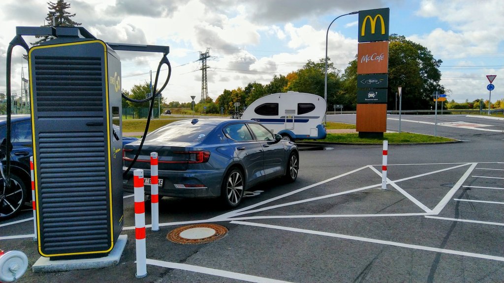 Klasse! Das konnten wir mit einer ohnehin geplanten Wohnwagentour nach Markgrafenheide bei Rostock/Warnemünde kombinieren und damit gleichzeitig die Tauglichkeit unseres E-Auto-Gespannes testen.
