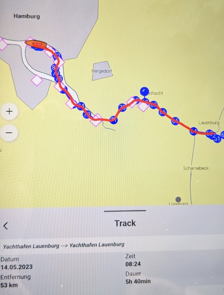 Nach 16 Fahrtagen, 80 Maschinenstunden, 601 km wunderschönen Fluß- und Seenlandschaften und mehr als 30 bewältigten Schleusen haben Michael und ich am Freitag, 19. Mai im WVW e.V. die Überführung der Minerva beendet.