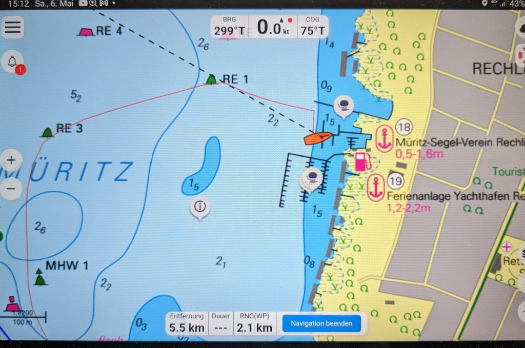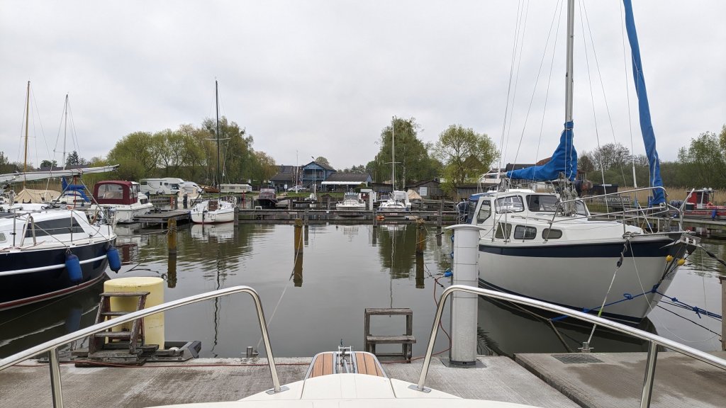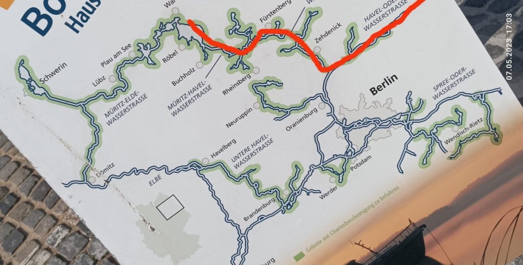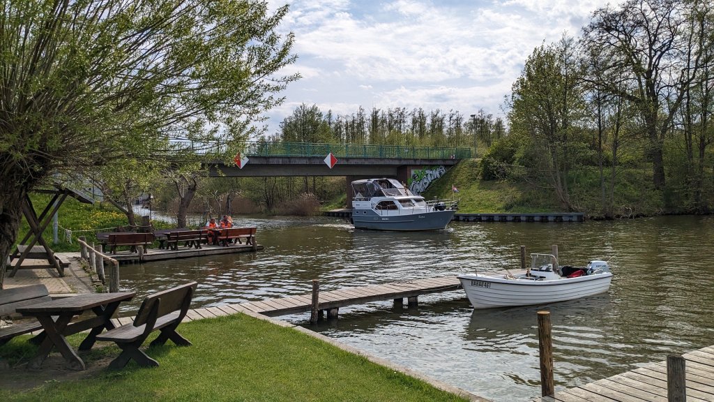 Bis hierhin haben wir 180 km abgespult und morgen geht’s auf der Müritz-Elde-Wasserstraße Richtung Dömitz/Elbe.