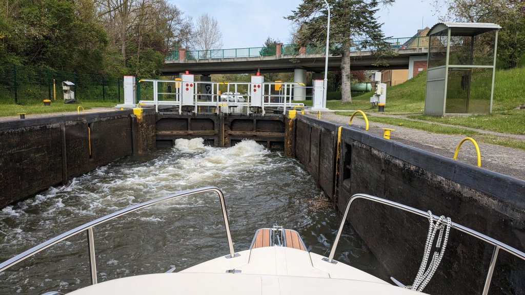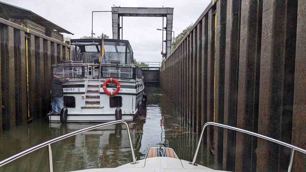 Heute hatten wir die 10 Seen – Tour und 3 Schleusen. Auf das Mogenbad verzichteten wir (Holen wir Mittags nach) und starteten gegen 08:30 um bereits nach knapp 60 Min zur Schleuse Strasen zu gelangen. Wir sind jetzt in Mecklenburg befahren die Müritz-Havel-Wasserstraße und es gibt hier Schleusenwärter. Die Reise durch die vielen offenen Seen ist nicht mehr so lauschig – eben Mecklenburgisch meint Michael. Außerdem hat er folgende Aussage von Bismarck ausgegraben „Wenn die Welt untergeht, dann ziehe ich nach Mecklenburg, da dauert alles 50 Jahre länger.“ MIchael ist selbst Mecklenburger und hat Humor.