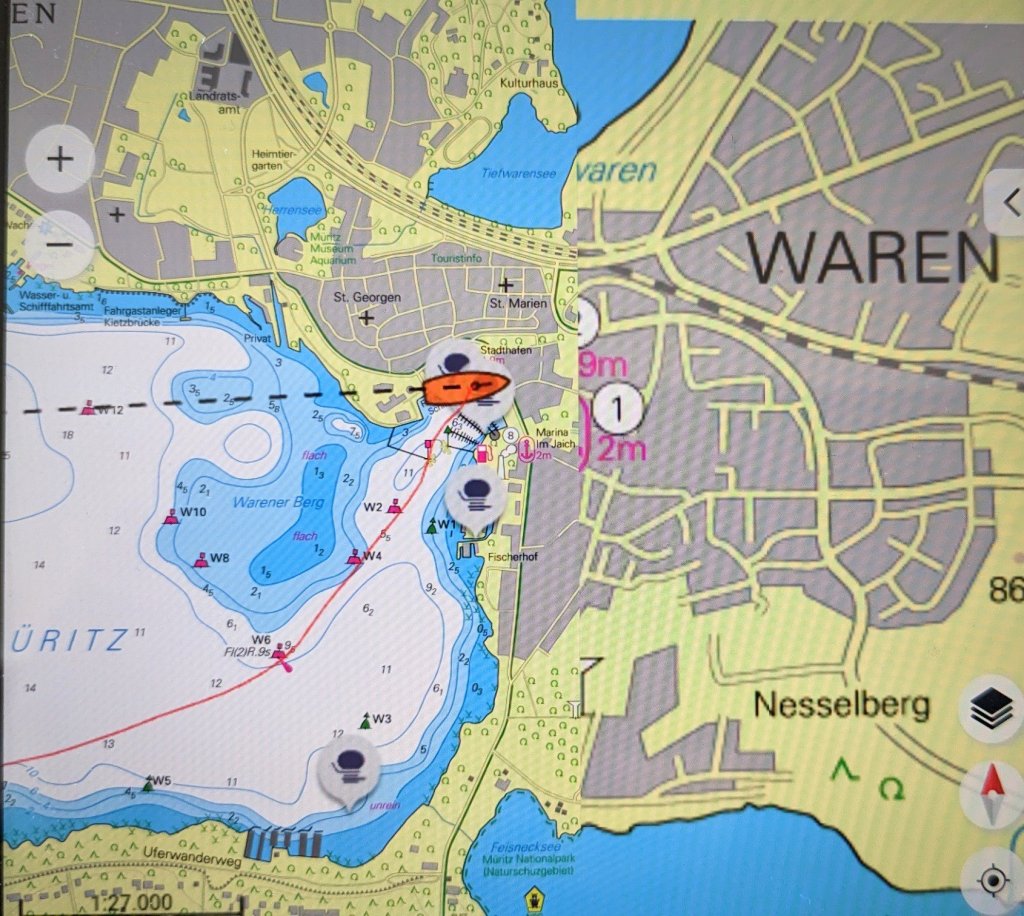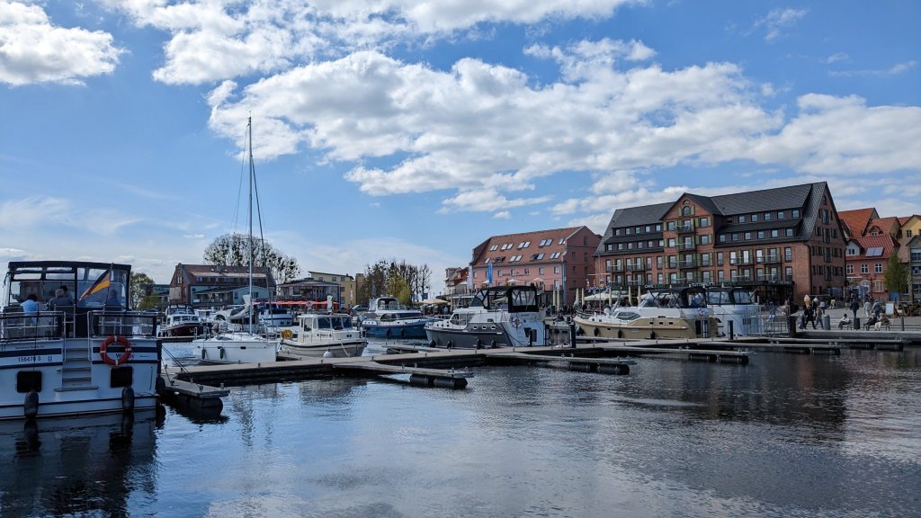 Bei strahlendem Sonnenschein geht’s heute nach dem Motto “ Wir fahren übern See, übern See mit einer hölzern Wurzel“ nach Waren. Hier im Stadthaven hat „Im Jaich“ alles unter seinen Fittichen. Da noch früh im Jahr ist es gar nicht überfüllt un wir finden einen geeigneten Platz mit schöner Aussicht. Natürlich machen wir einen Rungang durch den Ort, wobei uns vor allem die alte Bausubstanz gefällt. Hier finden wir auch in einem schön begrünten Hinterhof  ein urigen Bierlokal. Am Hafen ist es natürlich Betriebsamkeit mit jede Menge Cafees und Restaurants. Wir können in der Abendsonne sogar im Cockpit unser Abendbrot genießen und freuen uns auf die vorhergesagt weiteren 2 Schönen Tage unter Hochdruckeinfluss.