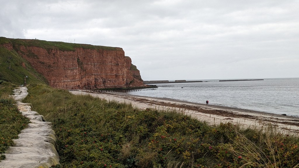 Donnerstag sollte es etwas ungemütlicher werden. Daher schnell noch ein Morgenbad und im Anschluss eine Wanderung aufs Oberland und später an der Ost-Kaje entlang (Teenk Beenk) zum Nordstrand mit Blick auf die Klippen zum Oberland.