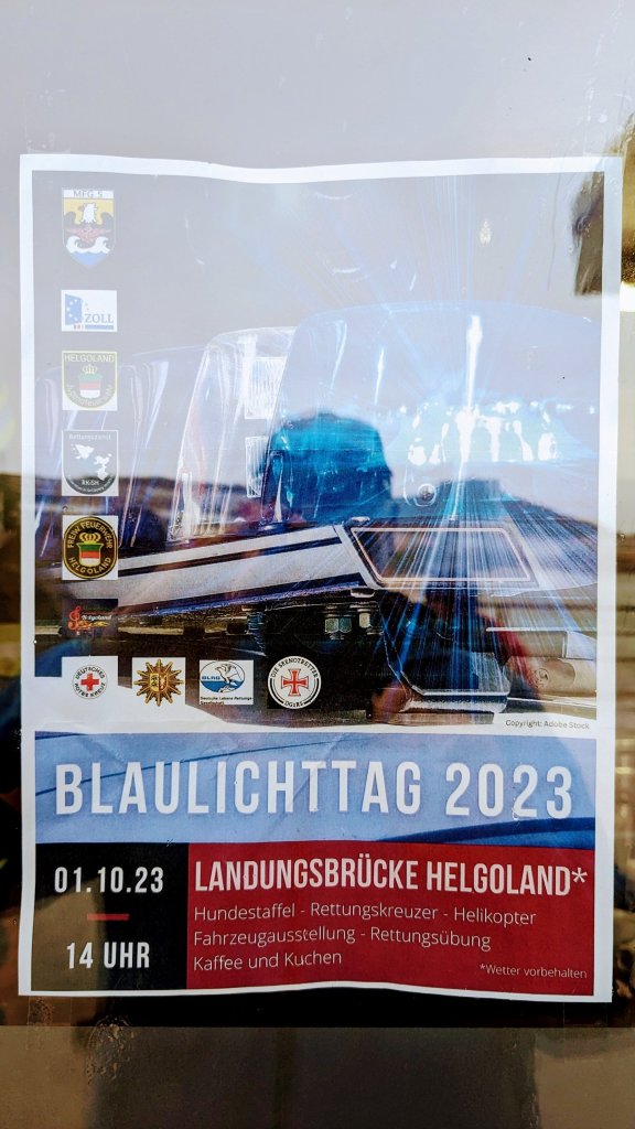 Für den „Blaulicht-Tag“ auf Helgoland war das Wetter nicht gerade gut. Aber etliche Vorführungen und das Kuchen-Buffet hatten scheinbar doch allerhhand Anziehungskraft.
