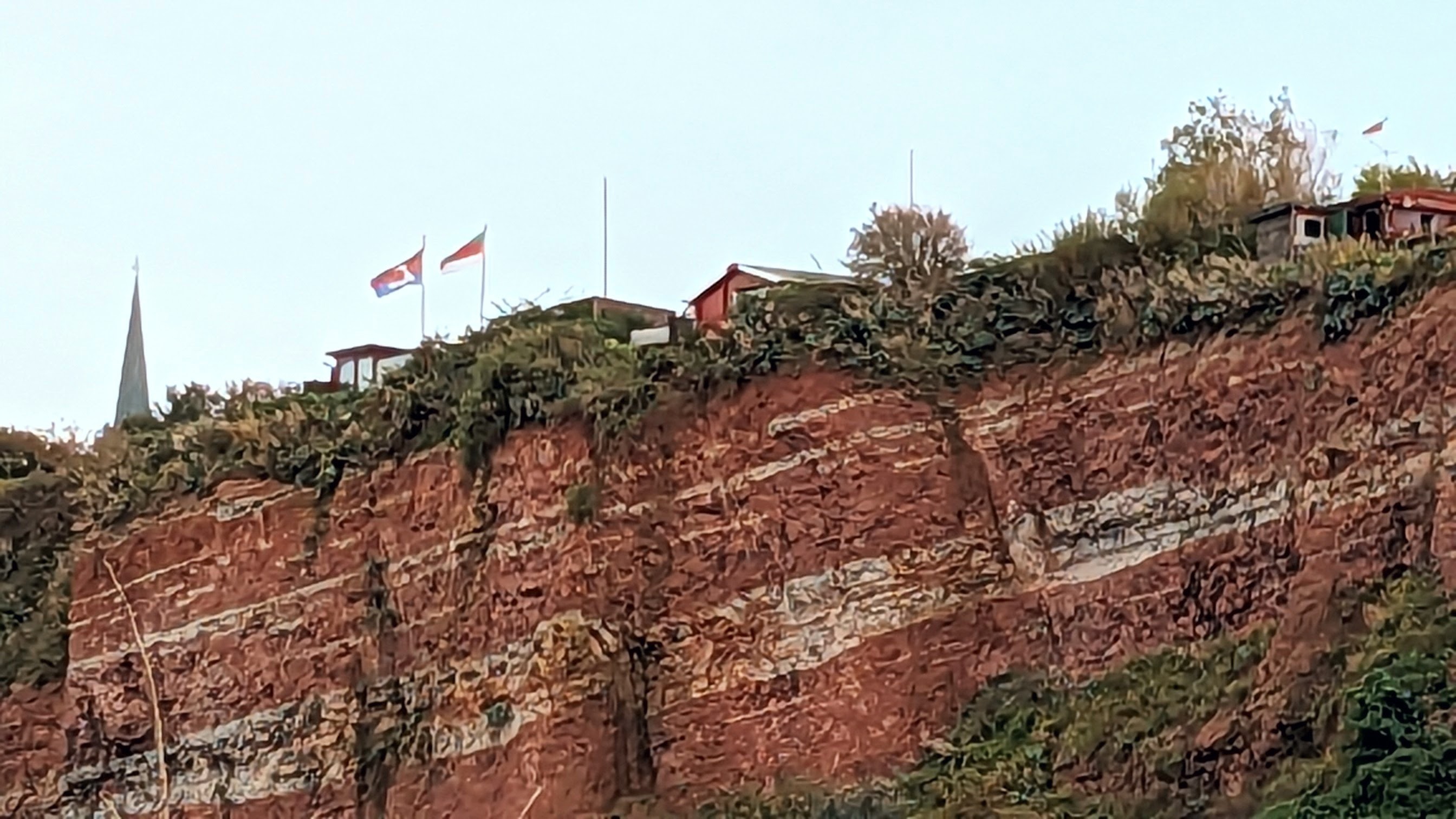 Donnerstag sollte es etwas ungemütlicher werden. Daher schnell noch ein Morgenbad und im Anschluss eine Wanderung aufs Oberland und später an der Ost-Kaje entlang (Teenk Beenk) zum Nordstrand mit Blick auf die Klippen zum Oberland.