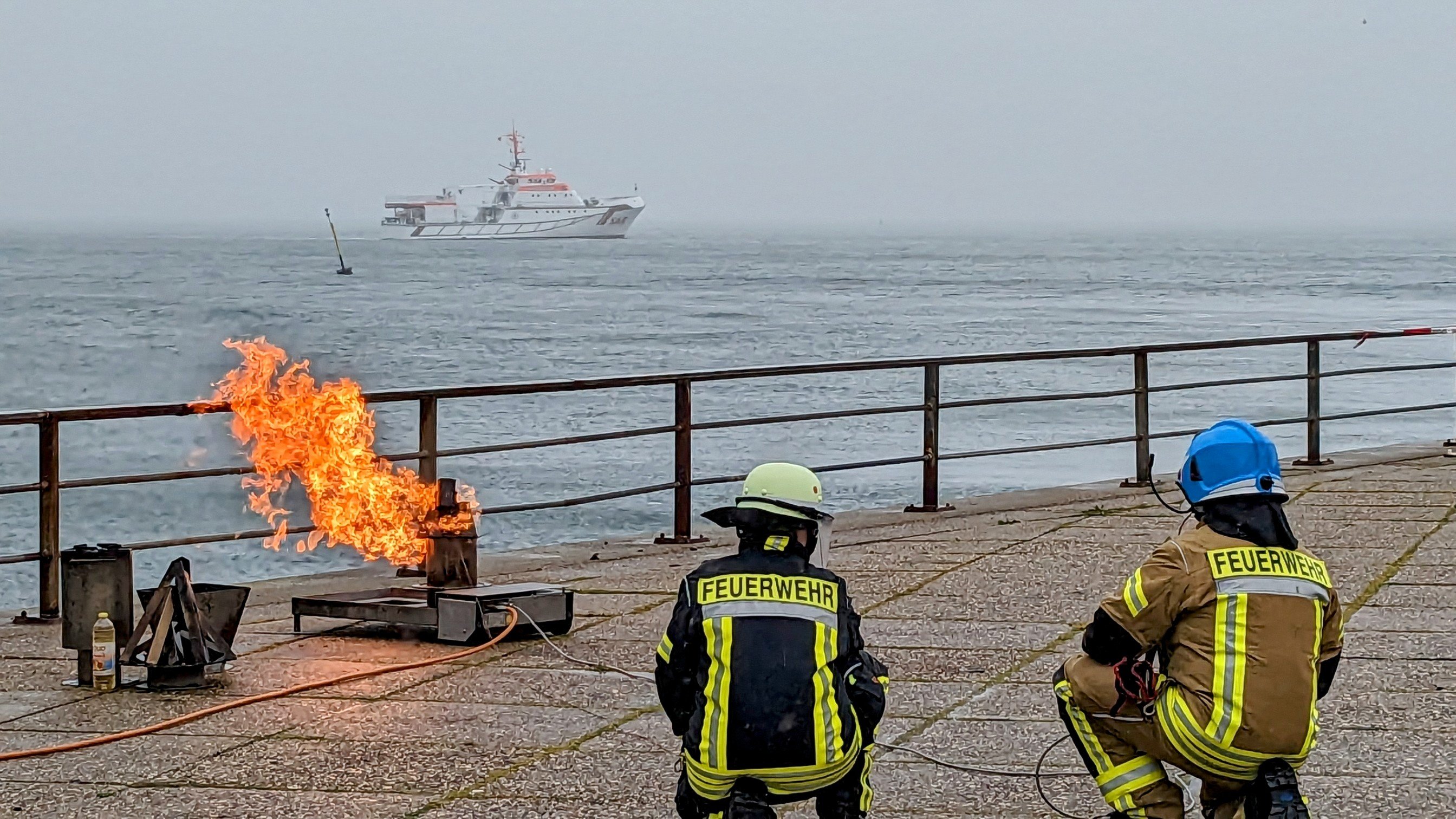 Für den „Blaulicht-Tag“ auf Helgoland war das Wetter nicht gerade gut. Aber etliche Vorführungen und das Kuchen-Buffet hatten scheinbar doch allerhhand Anziehungskraft.