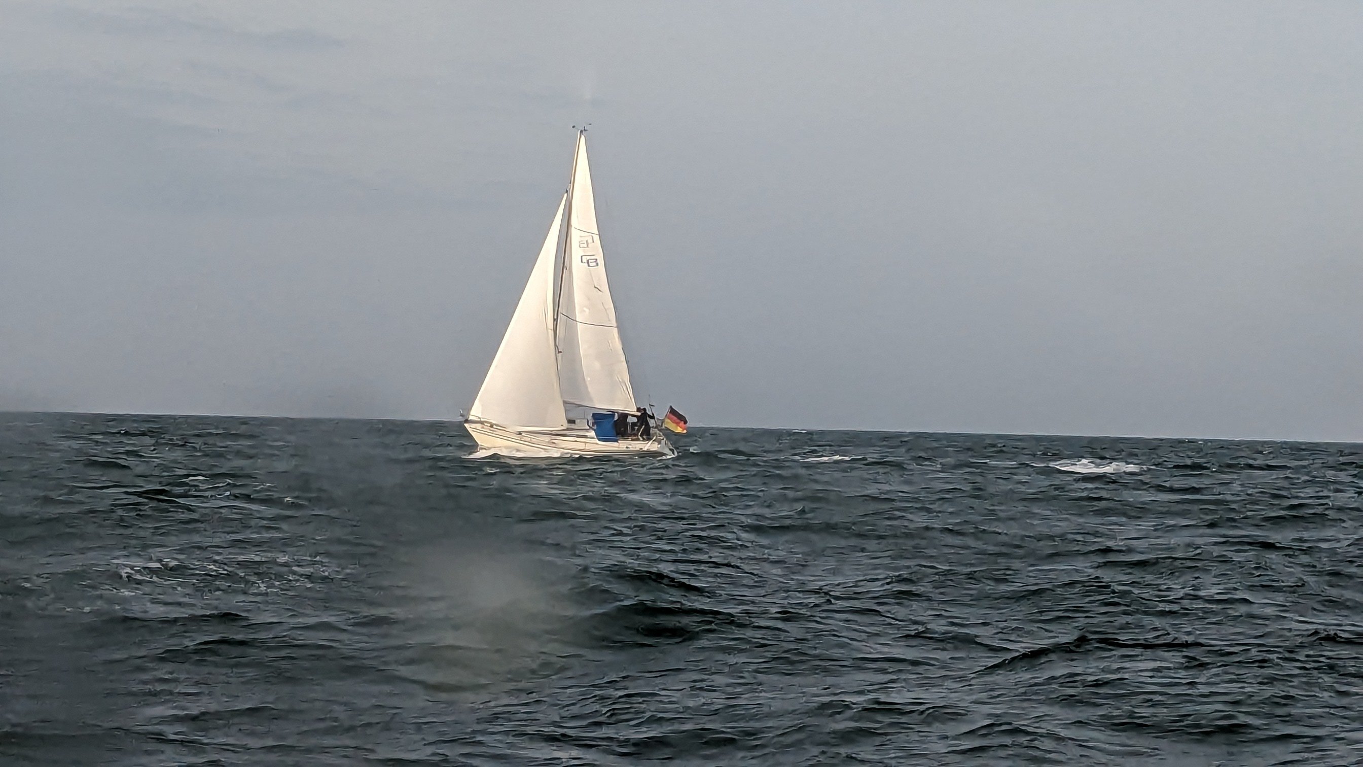 Montag war die bange Frage, ob das Wetter für unser Motorbötchen gut genug wäre. Wir liefen gegen 09:00 bei 4 Bft aus. Seegang wechselnd bis zu 1 m (teils Altsee) und auch etliche 5er Böen waren dabei. Einige Segler hatten getrefft.