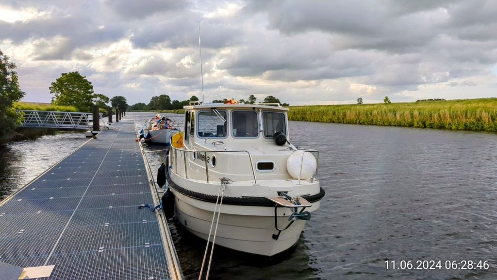 Am Mittwoch 12.06. hieß es tidebedingt bereits um 05:00 los zu fahren. Eine schöne Fahrt mit wenig Regen aber fantastischen Wolkenspielen. Bereits um 09:15 war ich in der City- Marina. Der Hafenmeister sah mich kommen und winkte mich in eine passende Box. Na so was – hier lag ich letztes Jahr doch auch.