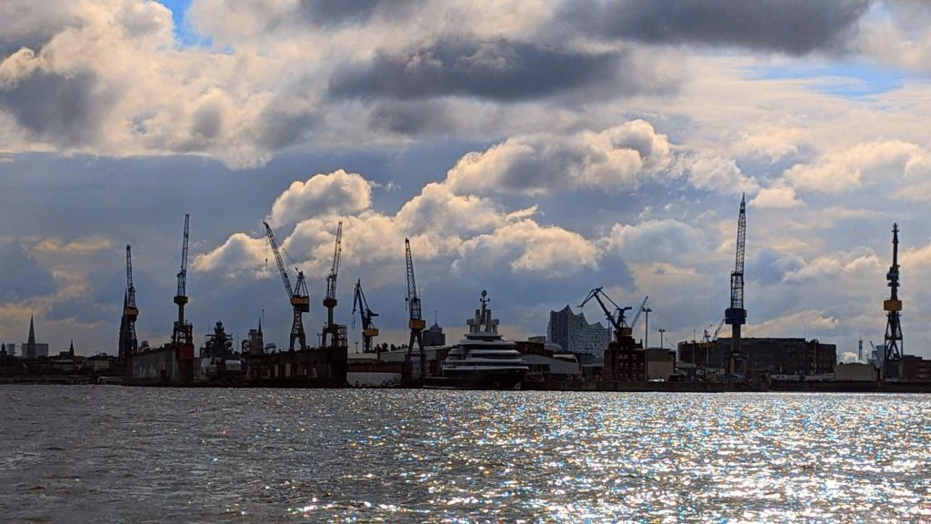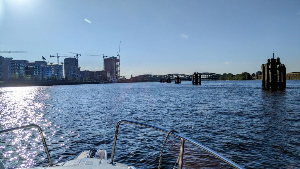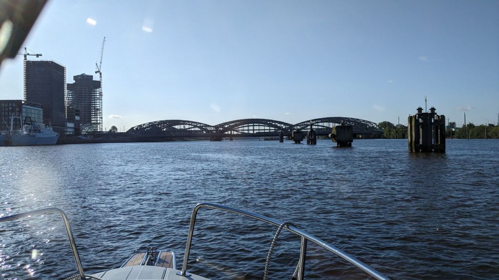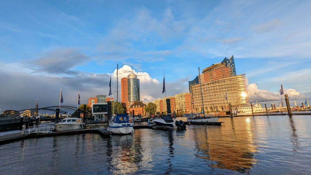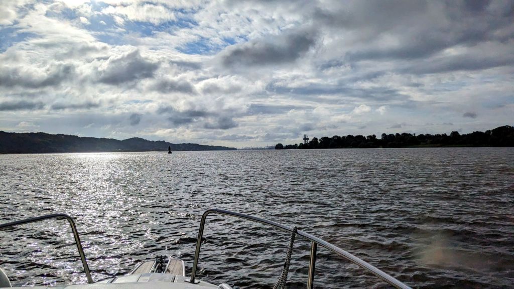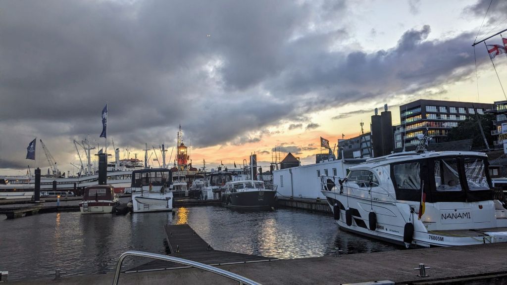 In Hamburg jagte ein Regenschauer den nächsten. Sehr schade fûr die vielen angereisten Touristen. Ich schaffte es bis zu einem Bootsausrüster und konnte zu einem Sonderpreis ein tolles Barometer für Minerva erstehen. Dies Instrument fehlte mir noch. Mit ein wenig Bastelei gleich an Bord installiert. Mittags Bistro mit Elbeblick und abends Fischbrötchen an Bord mit Traumblick auf die Elfie. Ein schöner Tagesabschluss.
