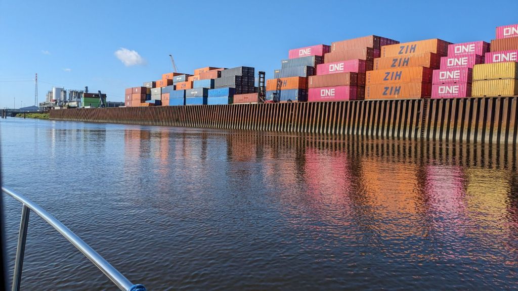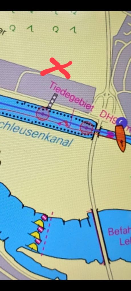 Montag 10.06. nahm ich in Bremerhaven die 9:00 Schleuse. Der Schwimmkran „Wal“ und ein Zollboot sorgten dafür, dass es mit der großen Kammer recht flott ging. Und auch die Schleuse in der Geeste hatte schon auf meinen telefonischen Anruf hin schon geöffnet und ich konnte direkt einlaufen :)) Ein guter Start!