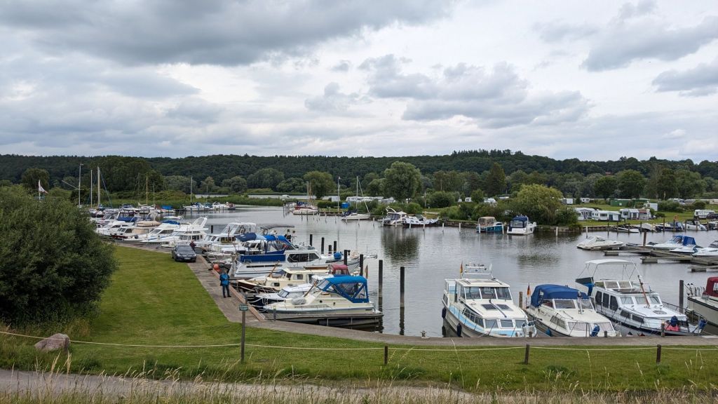 Von da bis Artlenburg nur noch 1 h. Schmale aber sehr gut betonte Einfahrt in eine Art See mit unzähligen Bootsliegeplätzen und Camping- Gelände. Unser Bootskonvoi ist zu Gast beim Artlenburger Bootsclub e.V. ABC. Eine fantastische Anlage mit entsprechendem Empfang. An Land stand schon eine Gruppe Konvoi- Tln- und winkte mich an einen komfortablen Legeplatz. Ich hatte Zeit mit dem Rad ein wenig die Gegend zu erkunden und bin voll begeistert.
