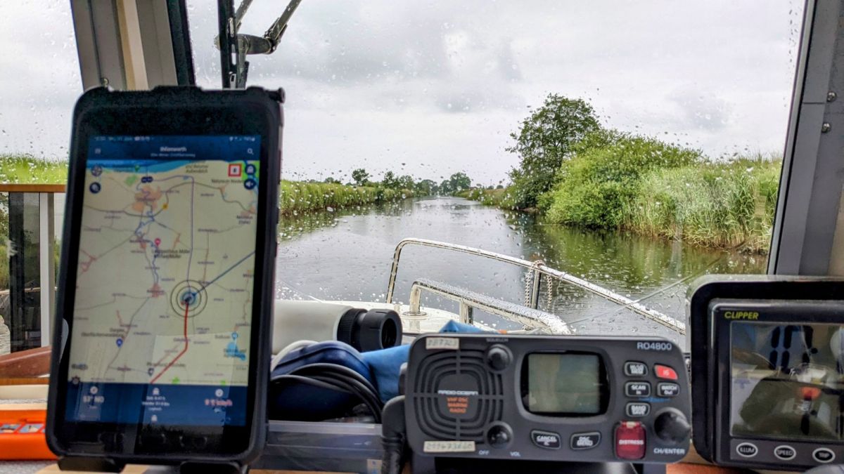 Am Folgetag nutzte ich die erste Schleuse zusammen mit den Seglern um 08:30, um im Yachthafen erneut fest zu machen. Tidebedingt würde eine Weiterfahrt nicht vor 14:00 möglich sein (2 h nach NW Otterndorf). Der Wetterbericht verhieß allerdings nichts Gutes. Mehrmals zelebrierte DP07 den Wetterbericht und genoss sichtlich die Böen- (Bft 8) und Gewitterwarnungen. Ich genoss die Stunden an Bord und beobachtete das wechselhaften Schauerwetter.