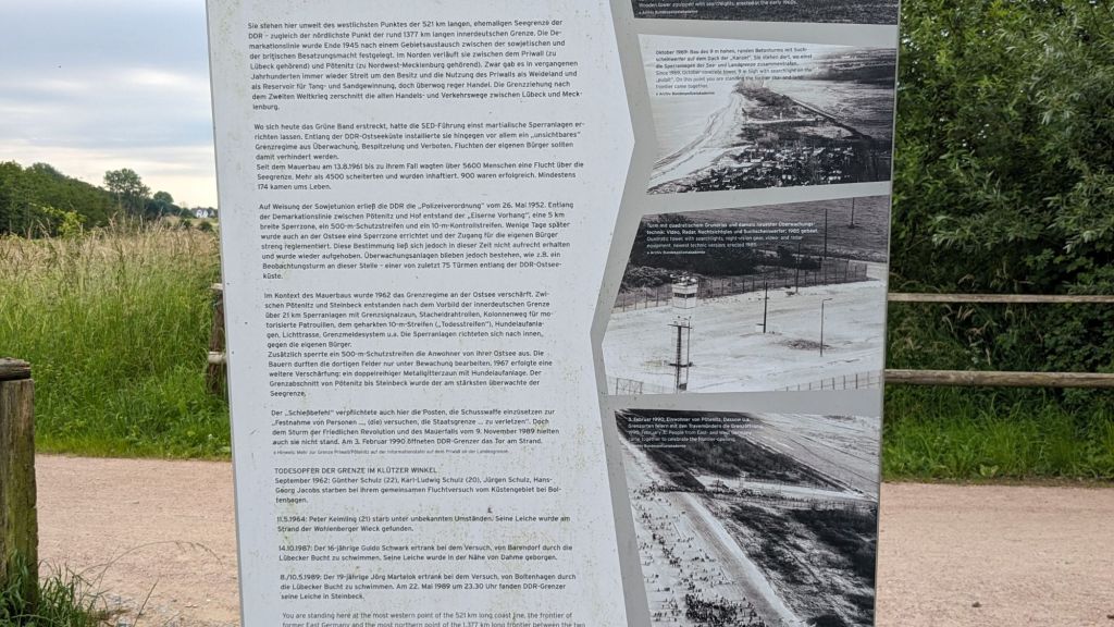 Hatte gestern von einer netten Dame den Tipp erhalten einmal rüber zu fahren und und Richtung innerdeutscher Grenze zu schauen. Außerdem kamen Erinnerungen hoch. Ich habe vor ca. 35 Jahren schon einmal im Passathafen direkt vor dem Bug des Großseglers gelegen, als wir auf der Rückkehr von Bornholm waren. Also nix wie rüber. Außerdem sollte es nachmittags regnen.