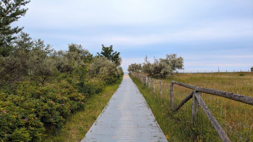 Am Passathafen vorbei ging’s immer an der Wasserkante mit ihren Dünen entlang durch ein Gebiet mit vielen kleinen Häuschen.