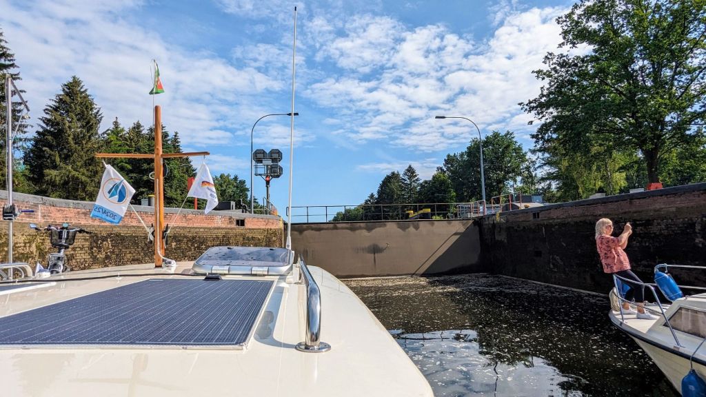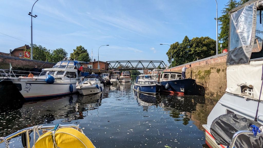 In der nächsten Schleuse Witzeeze nach ca. 6 nm brach allerdings der Plan zusammen, die Boote konnten wegen fehlender Festmachmöglichkeiten nicht dicht genug aufschließen – aber trotzdem kamen alle hinein.