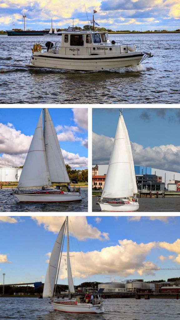 Bei der Anfahrt Richtung Schweiburg mit meiner jetzigen „Minerva“ hatte ich einen schönen Moment. Ich fuhr an meiner ehemaligen SY „Swantje“ vorbei, die von einem euch vielleicht bekannten Foristen aus dem Segeln- Forum zu meiner Freude eifrig gesegelt wird.