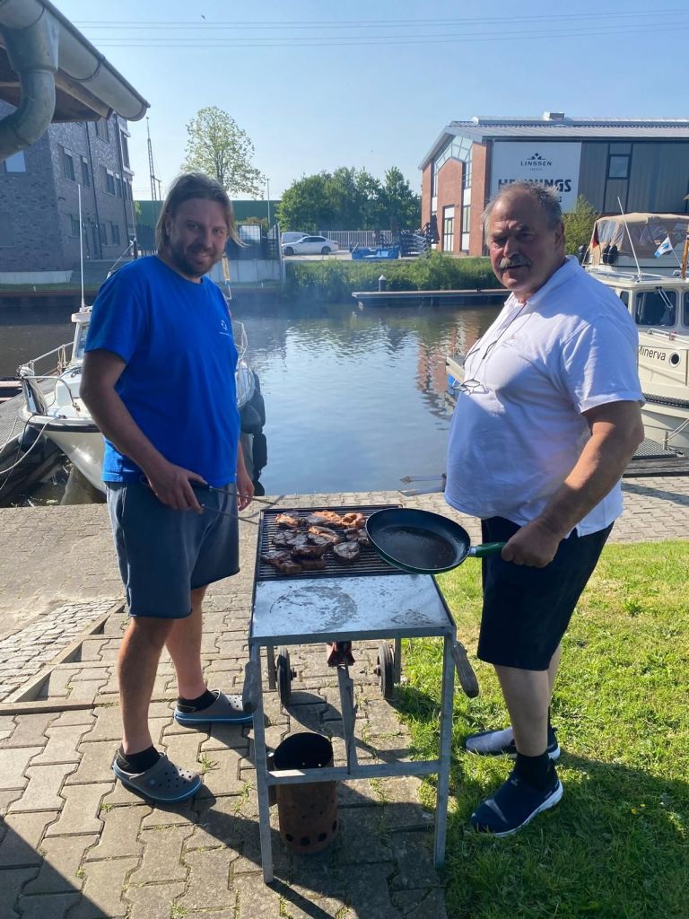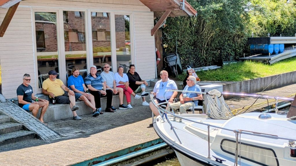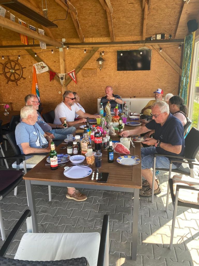 Der Yachtclub Turmkanal betreibt hier zusammen mit dem Ruderverein eine hervorragende Anlage. Klaus und Gert waren schon ein Tag eher da und hatten uns berichtet. Wir wurden von den beiden mit kalten Getränken empfangen. Klasse!
