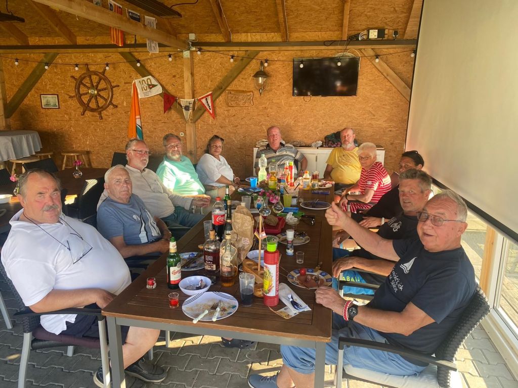 Abends starteten wir -nun vollzählig mit 12 Tuckertourern- einen Grillabend, der naturgemäß feuchtfröhlich endete. Klaus hatte alles super vorbereitet . Danke! Die Flasche „Moor-Birne“ von mir wurde auf jeden Fall geleert und auch der Rum von David fand dankbare Abnehmer.